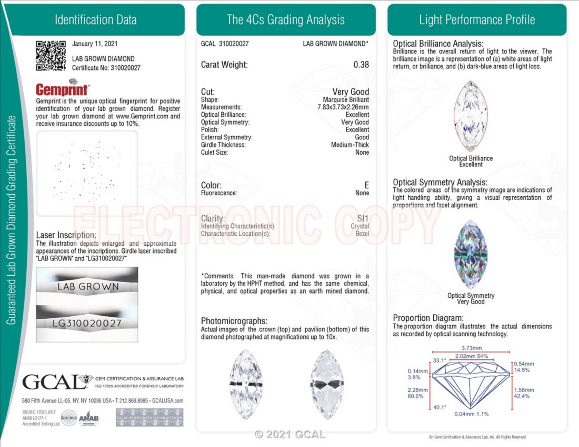 0.38 Carat marquise lab Diamond