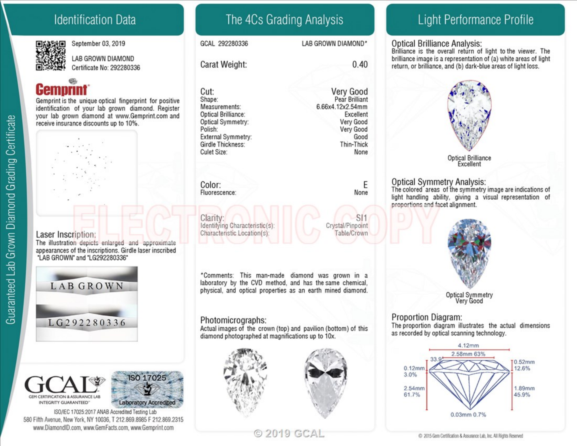 0.40 Carat pear lab Diamond