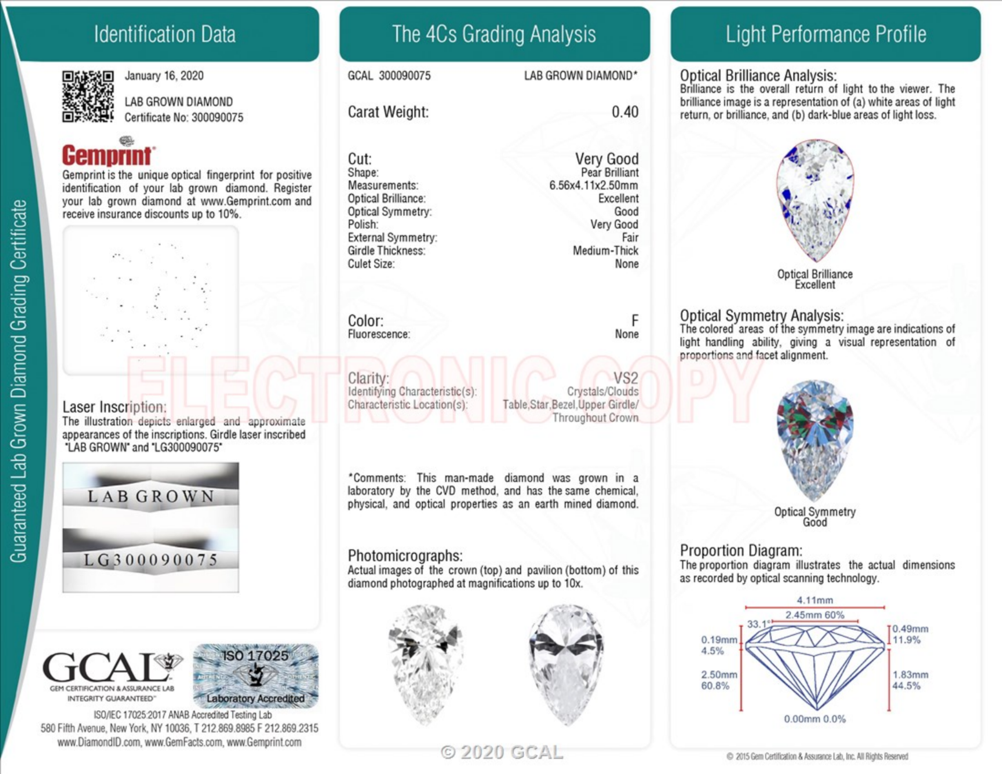 0.40 Carat pear lab Diamond