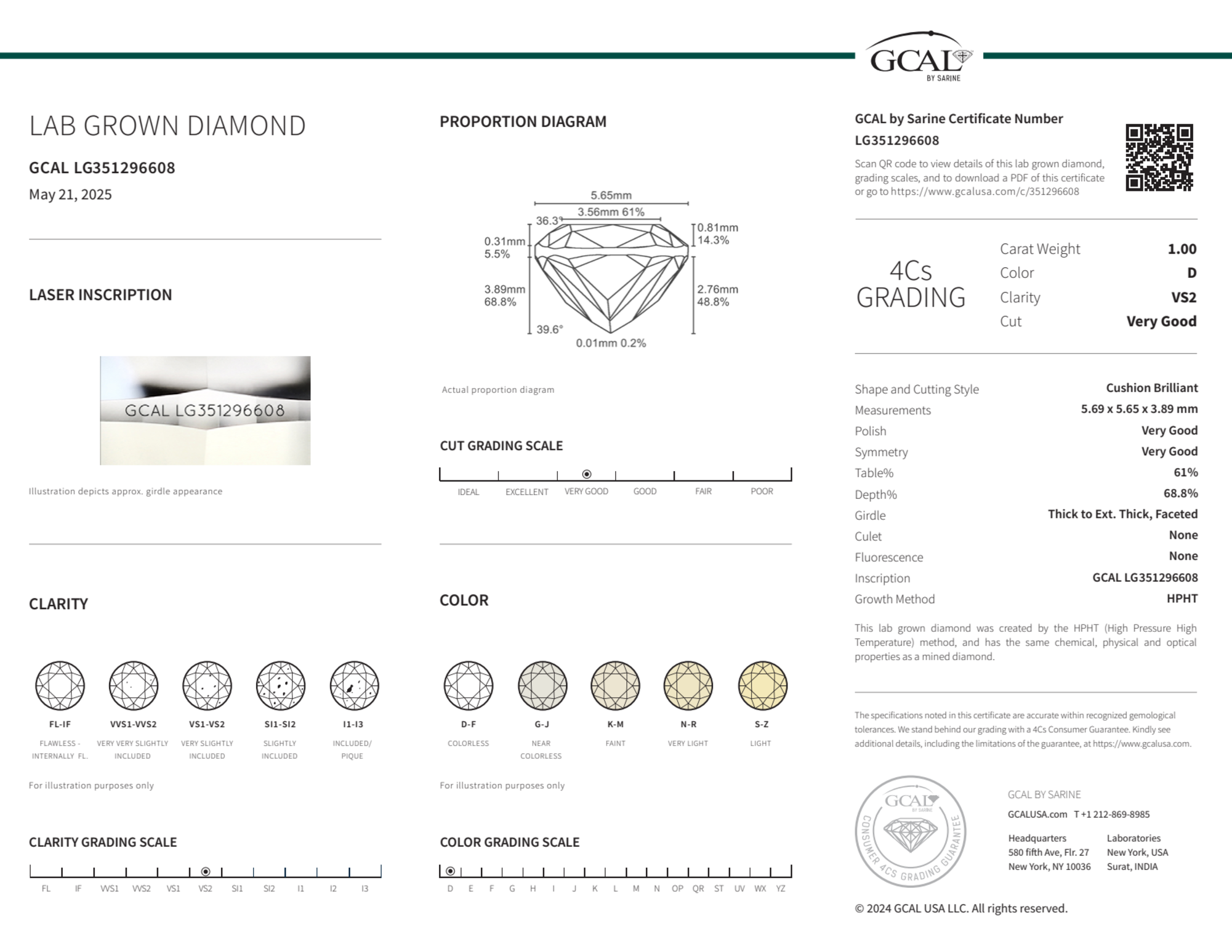 1.00 Carat cushion lab Diamond