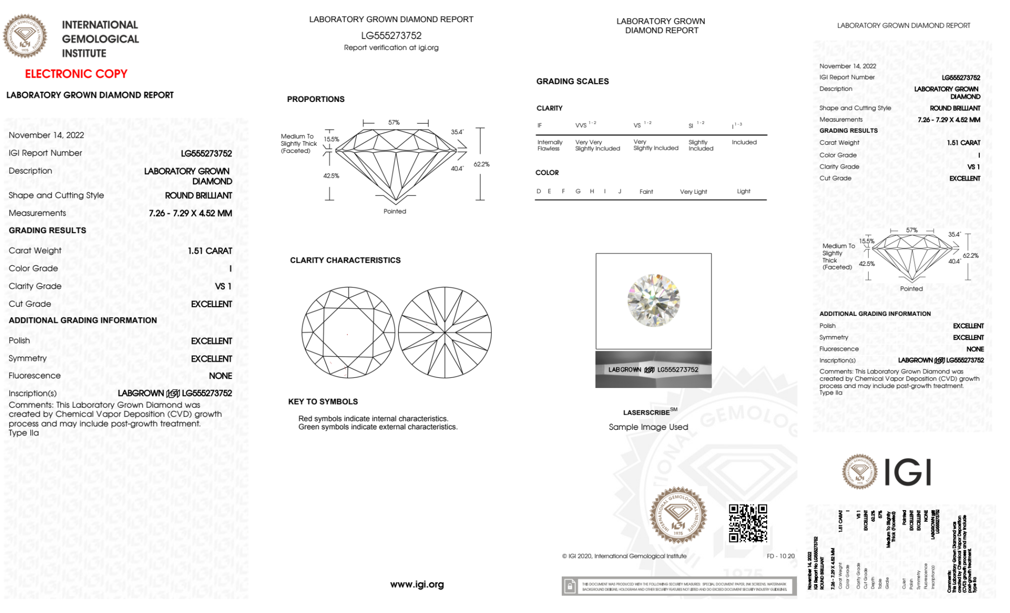 Your 1.51 carat Round lab diamond is graded I color (Near Colorless), and you can read more about I color diamonds here.