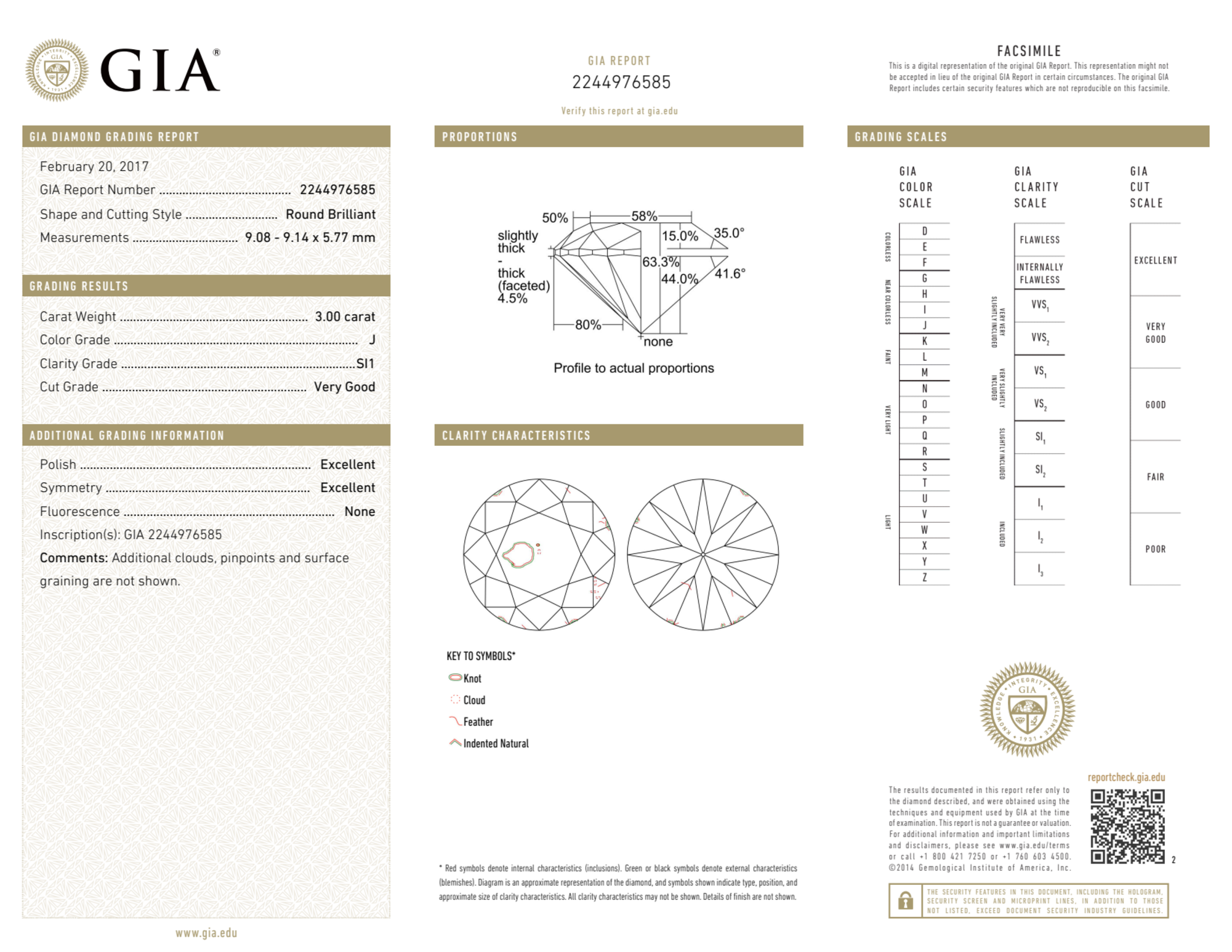 Your 3.00 carat Round natural diamond is graded J color (Near Colorless), and you can read more about J color diamonds here.