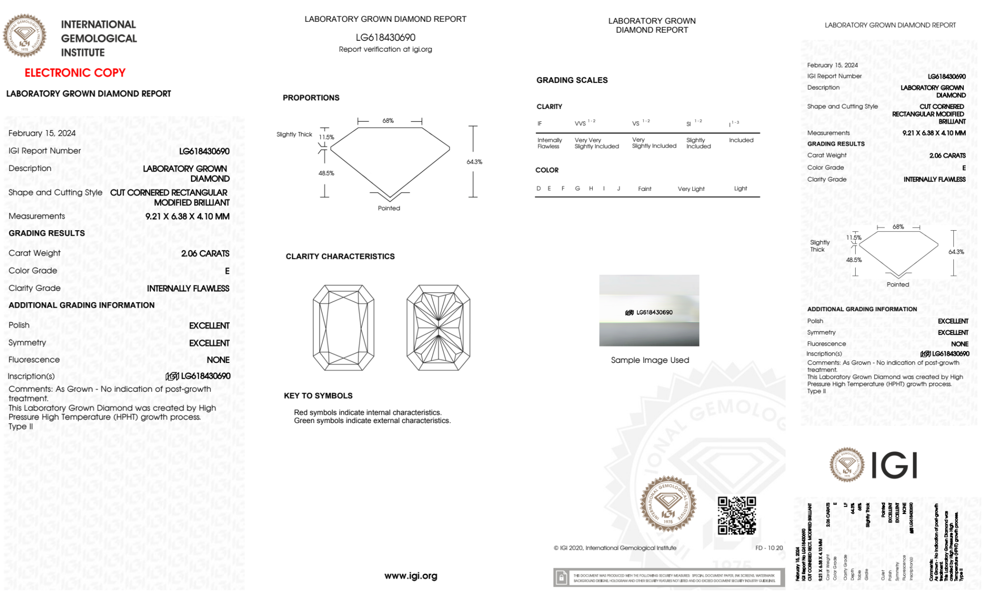 Your 2.06 carat Radiant lab diamond is graded E color (Colorless), and you can read more about E color diamonds here.