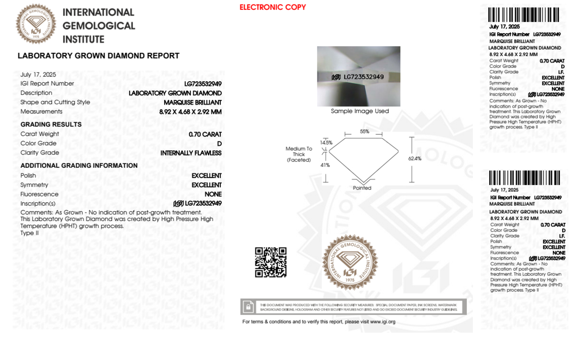 Beautiful ring, exactly as pictured. Prompt service, email updates on progression from inspecting the diamond to adding it to the ring setting. Packaging was great! She said YES!