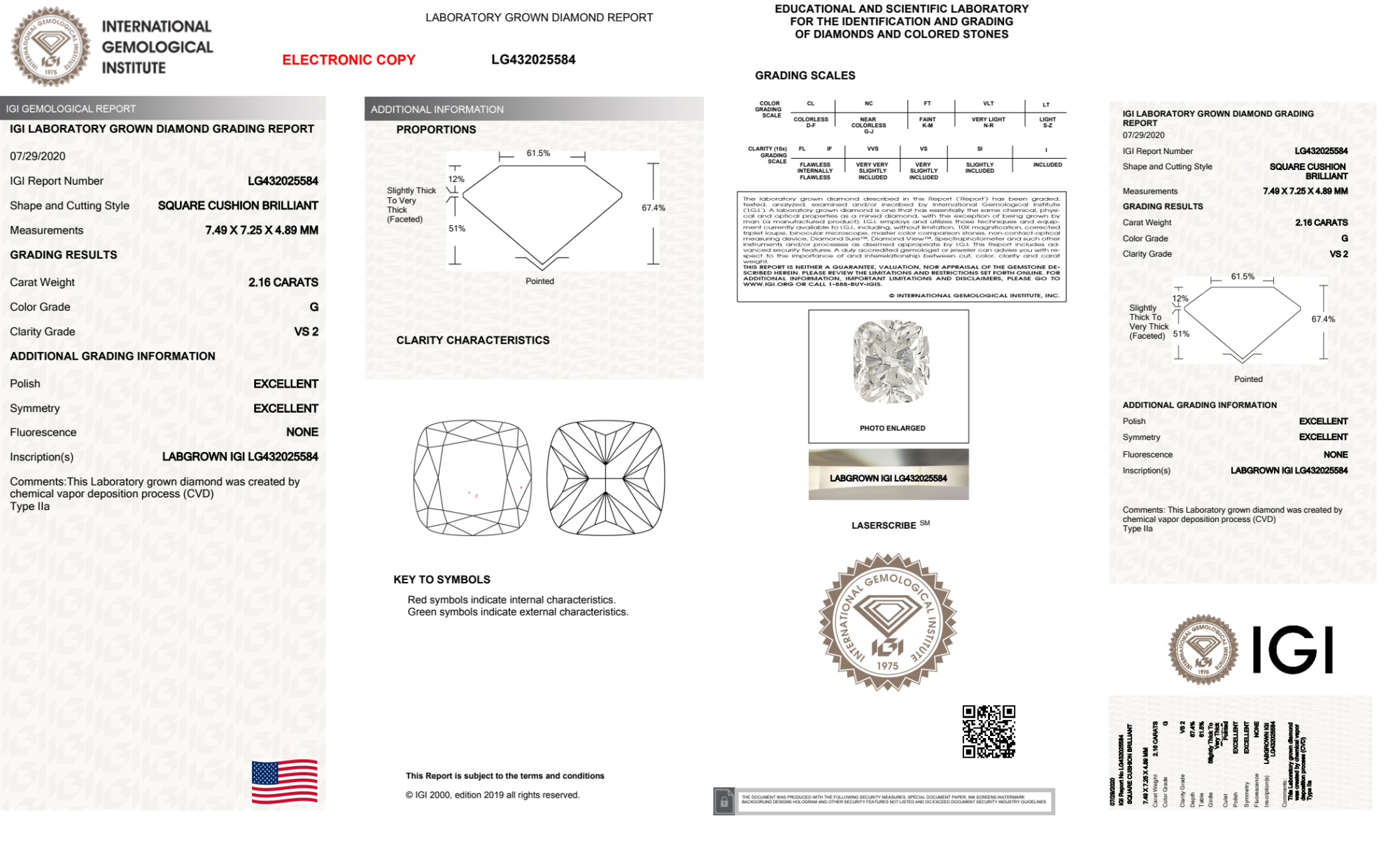 2.16 Carat cushion lab Diamond