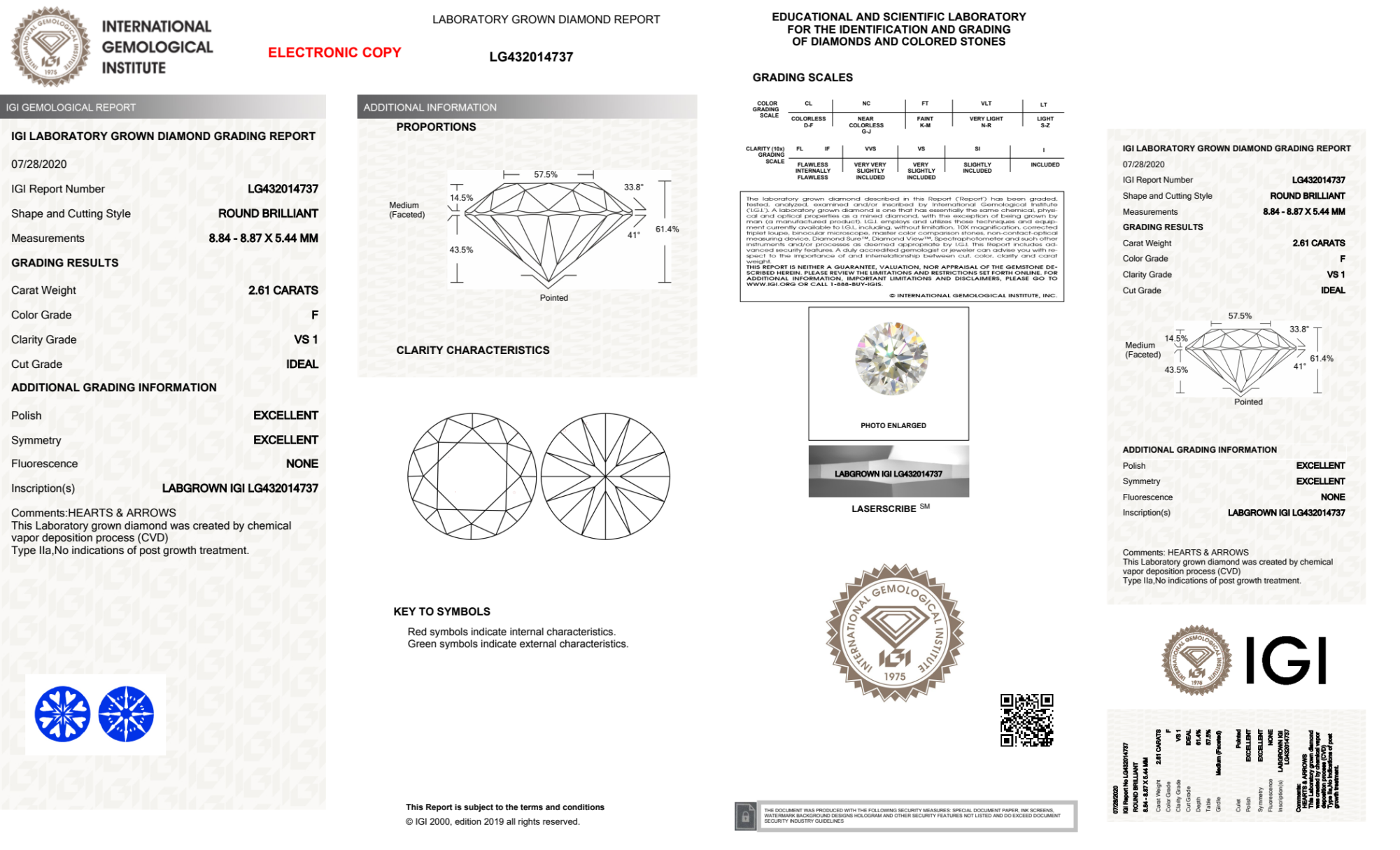 IGI CERTIFIED 2.61 Carat round lab Diamond