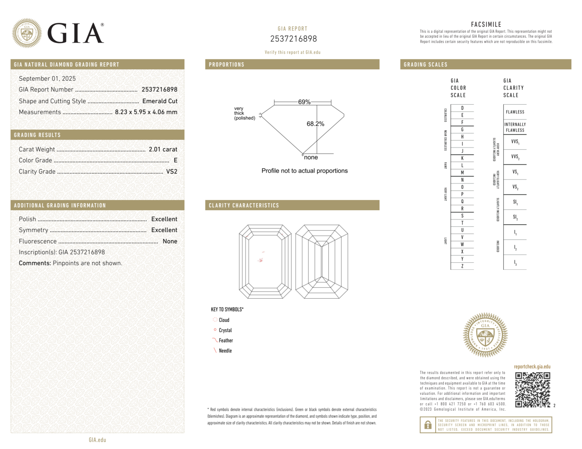 Your 2.01 carat Emerald natural diamond is graded E color (Colorless), and you can read more about E color diamonds here.