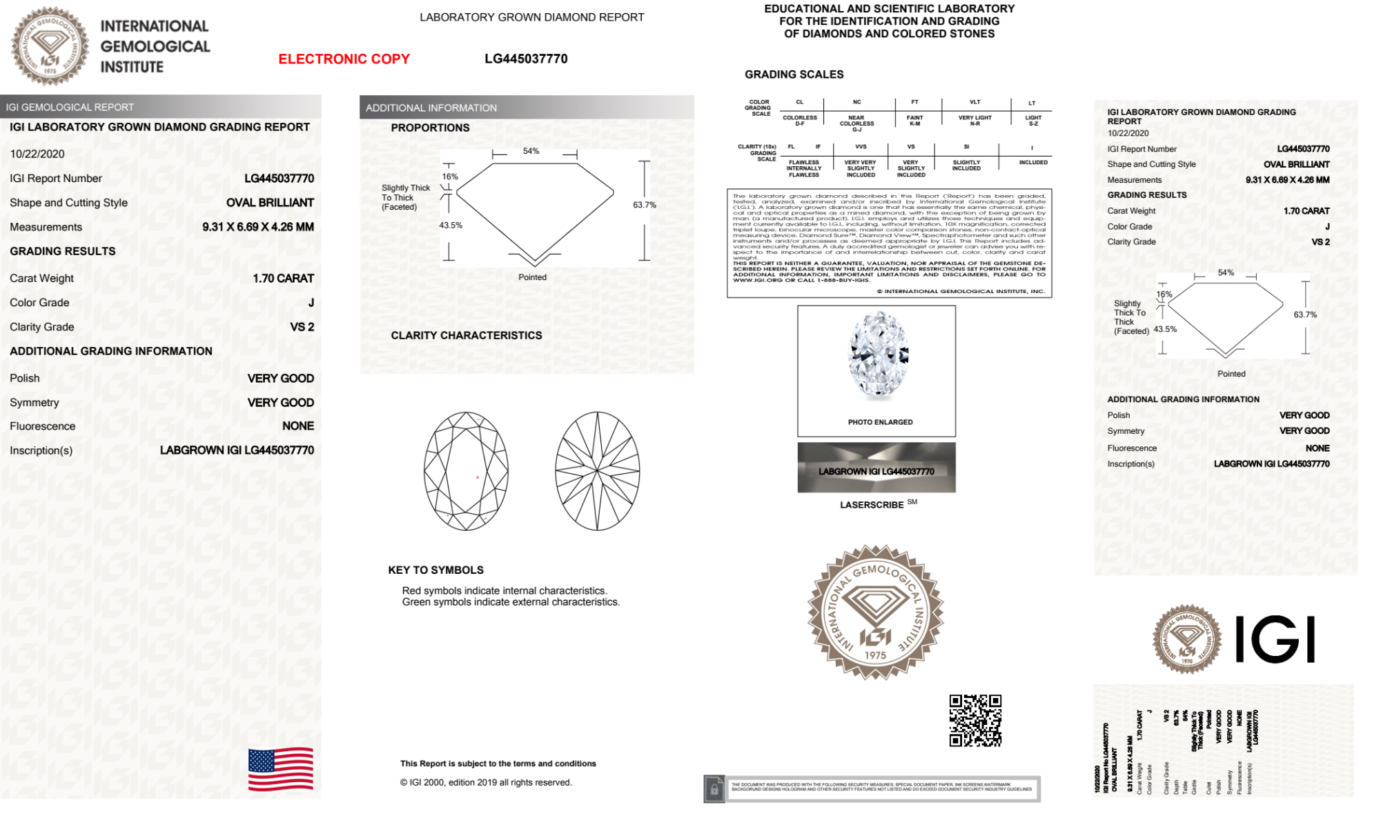 Your 1.70 carat Oval lab diamond is graded J color (Near Colorless), and you can read more about J color diamonds here.