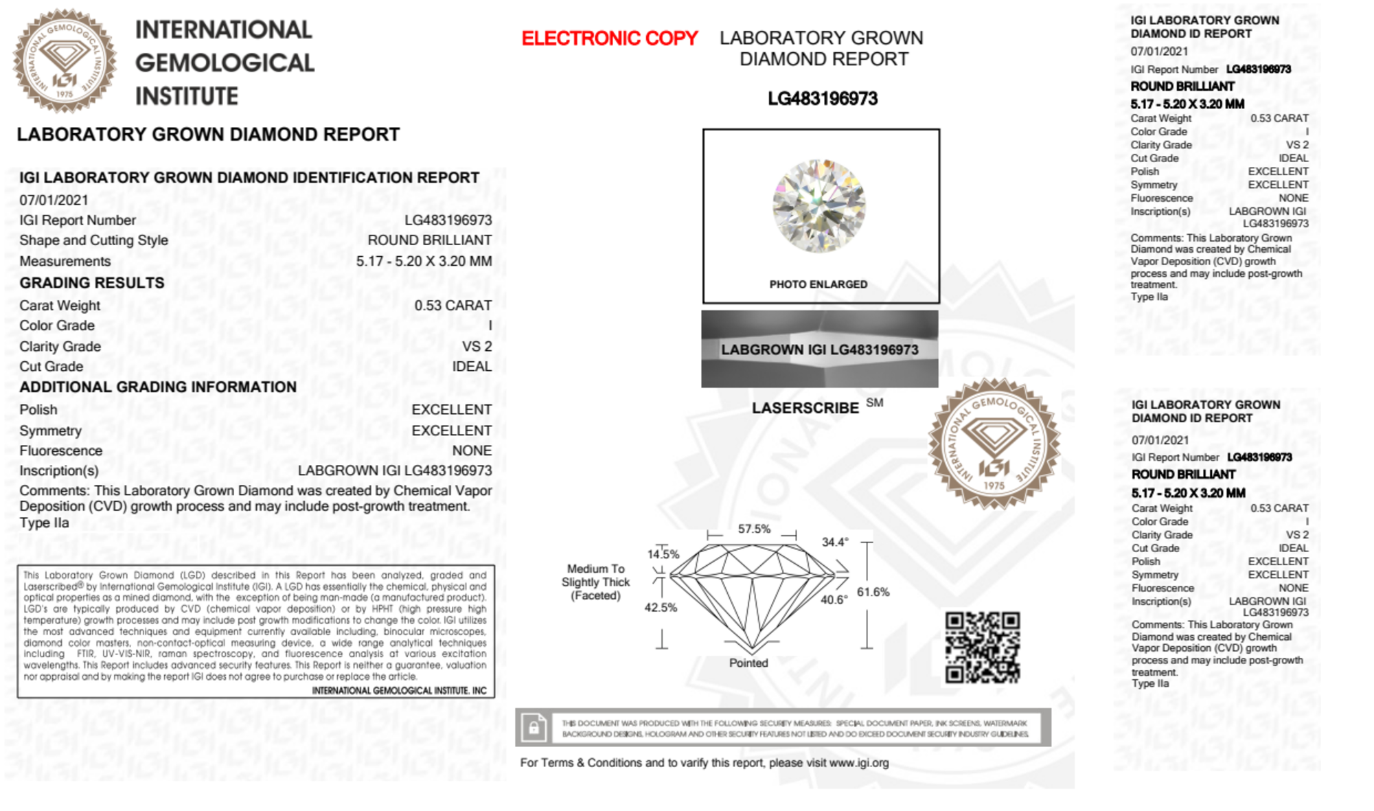 Your 0.53 carat Round lab diamond is graded I color (Near Colorless), and you can read more about I color diamonds here.