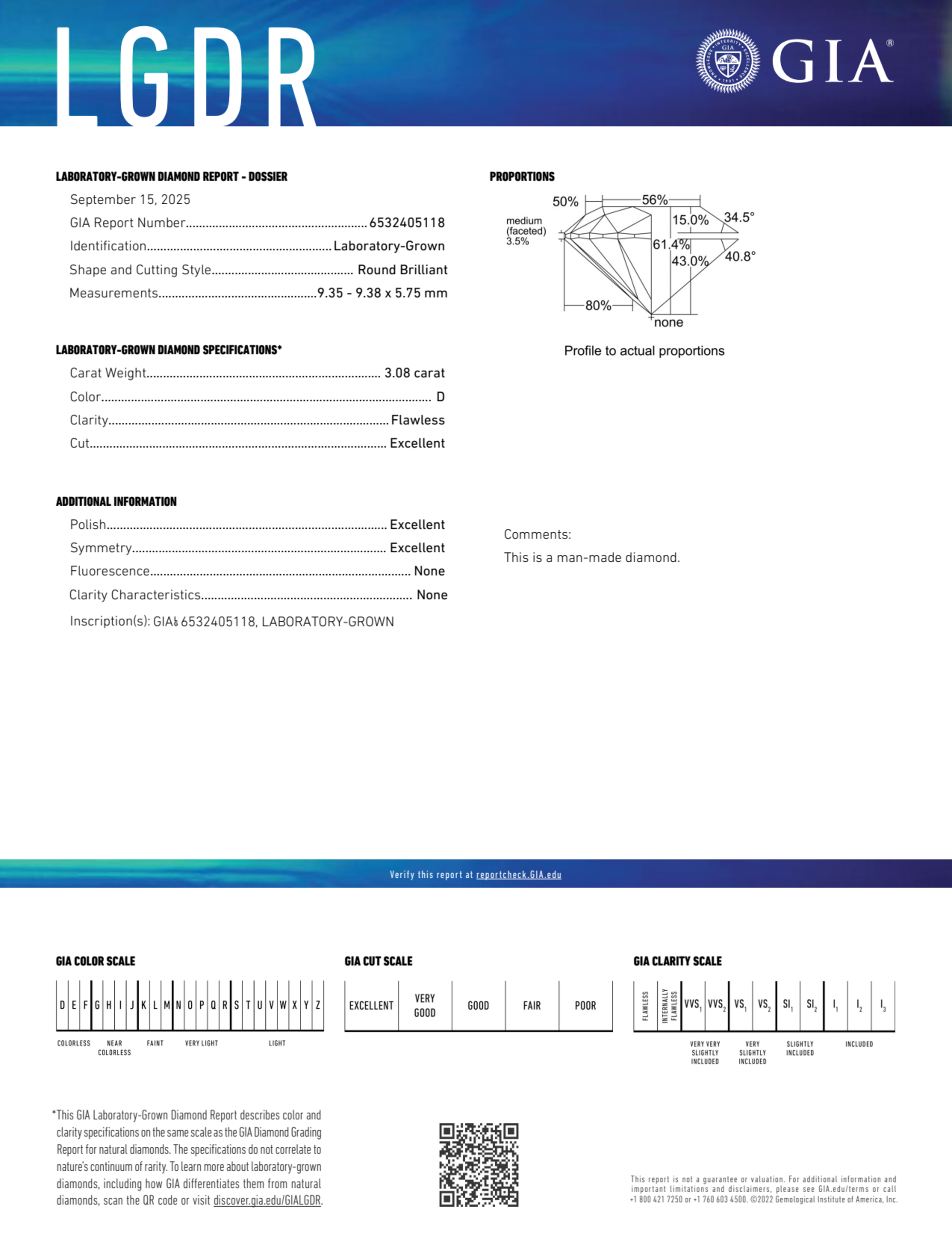 3.08 Carat round lab Diamond