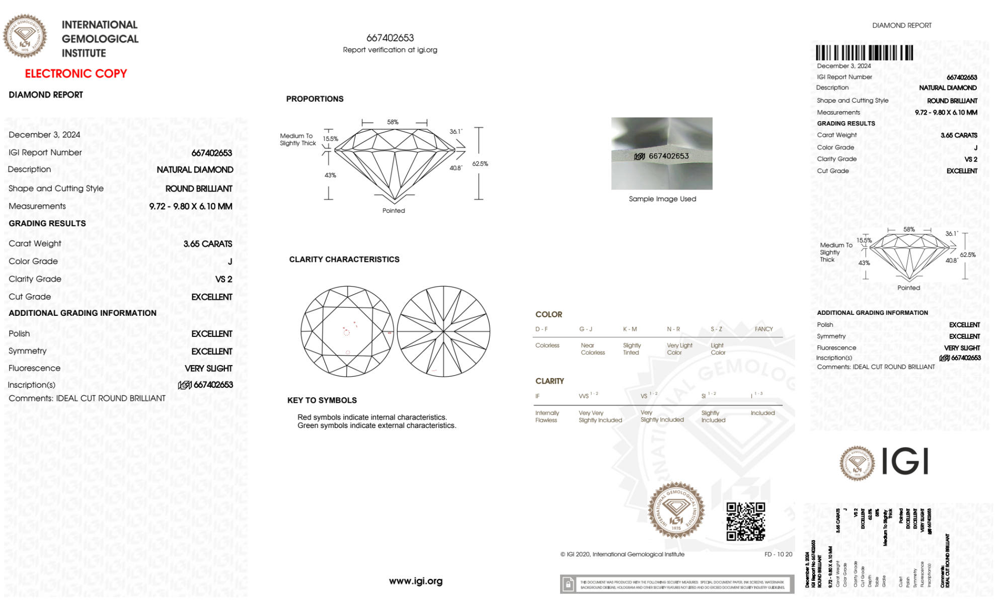 Your 3.65 carat Round natural diamond is graded J color (Near Colorless), and you can read more about J color diamonds here.