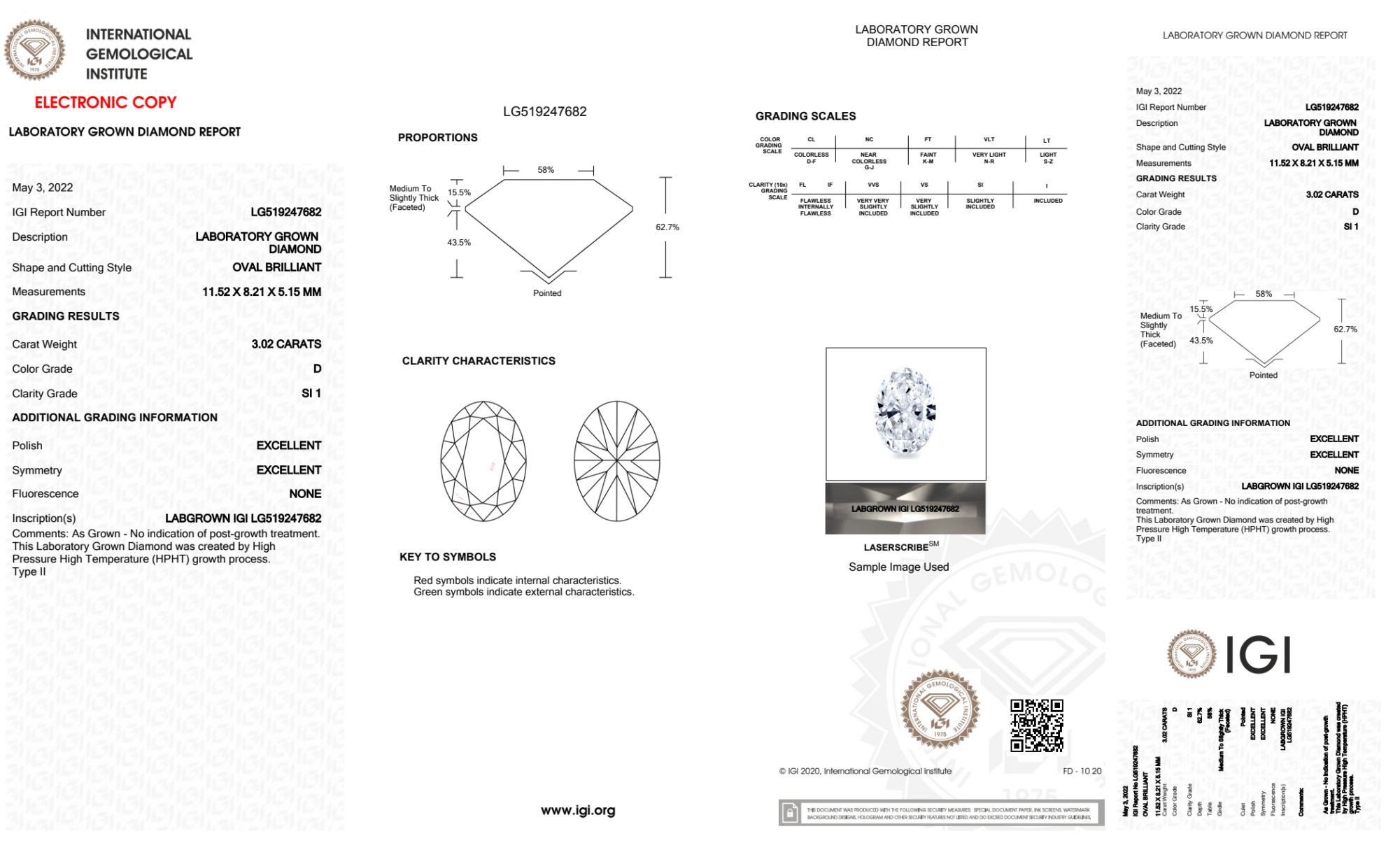Your 3.02 carat Oval lab diamond is graded D color (Colorless), and you can read more about D color diamonds here.