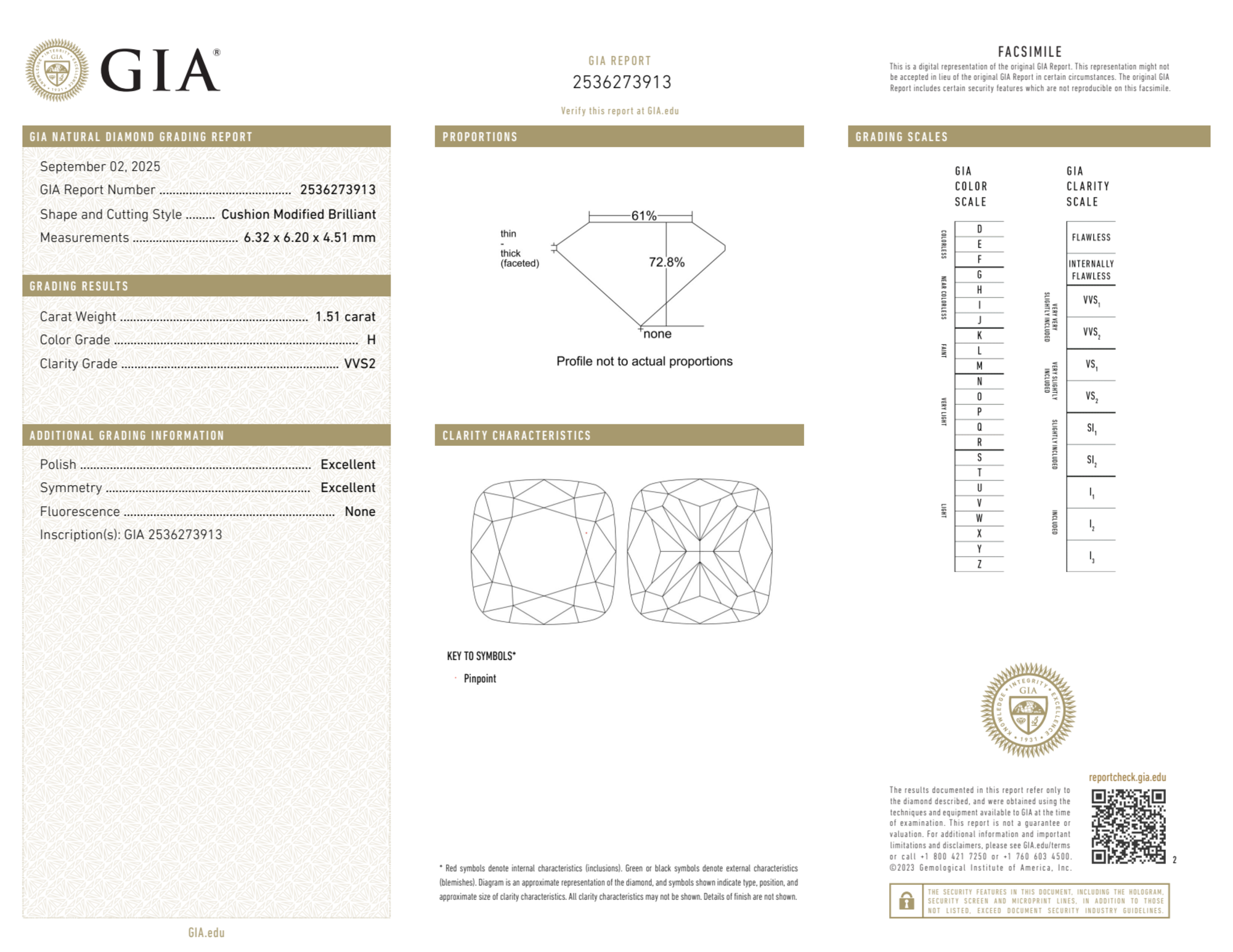 1.51 Carat cushion natural Diamond