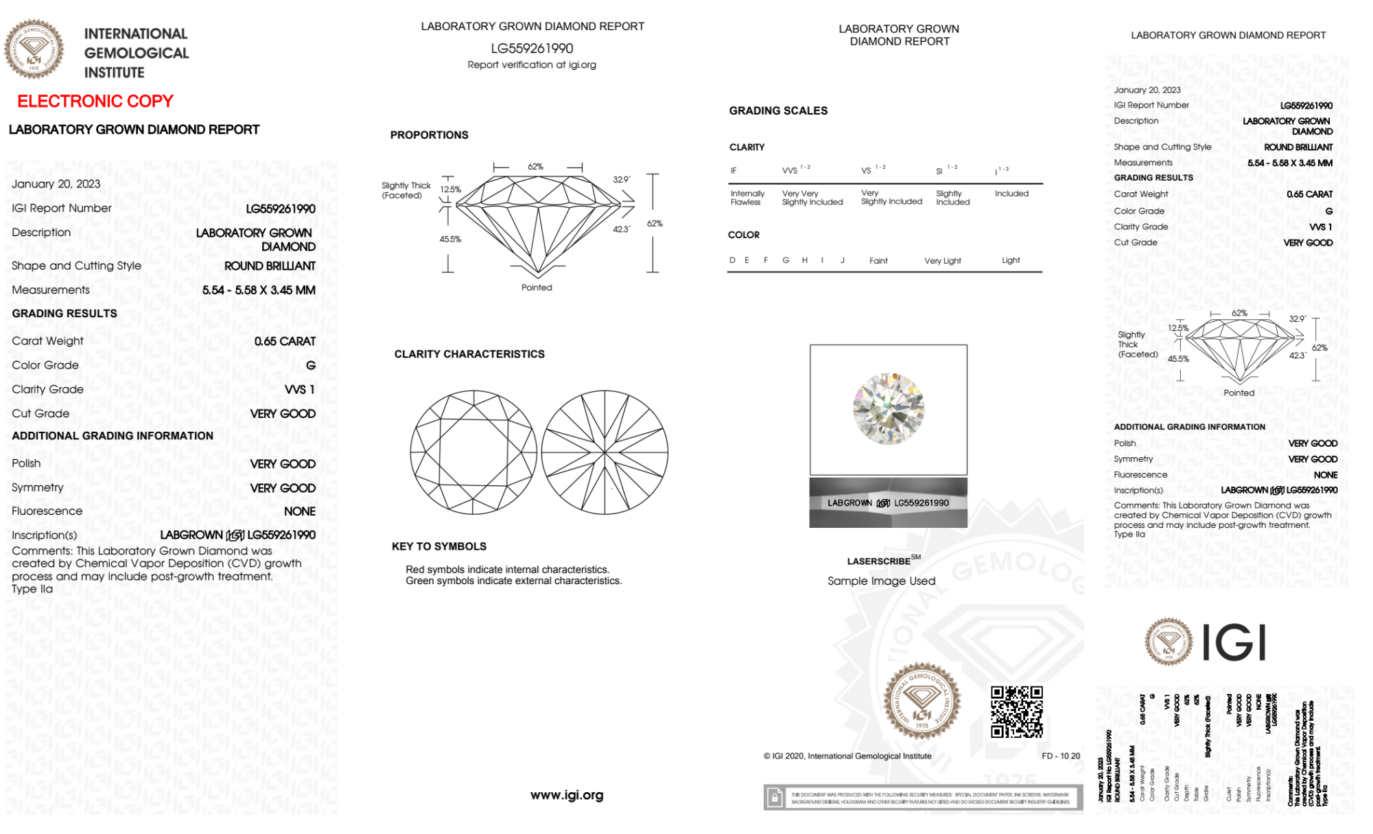 Your 0.65 carat Round lab diamond is graded G color (Near Colorless), and you can read more about G color diamonds here.
