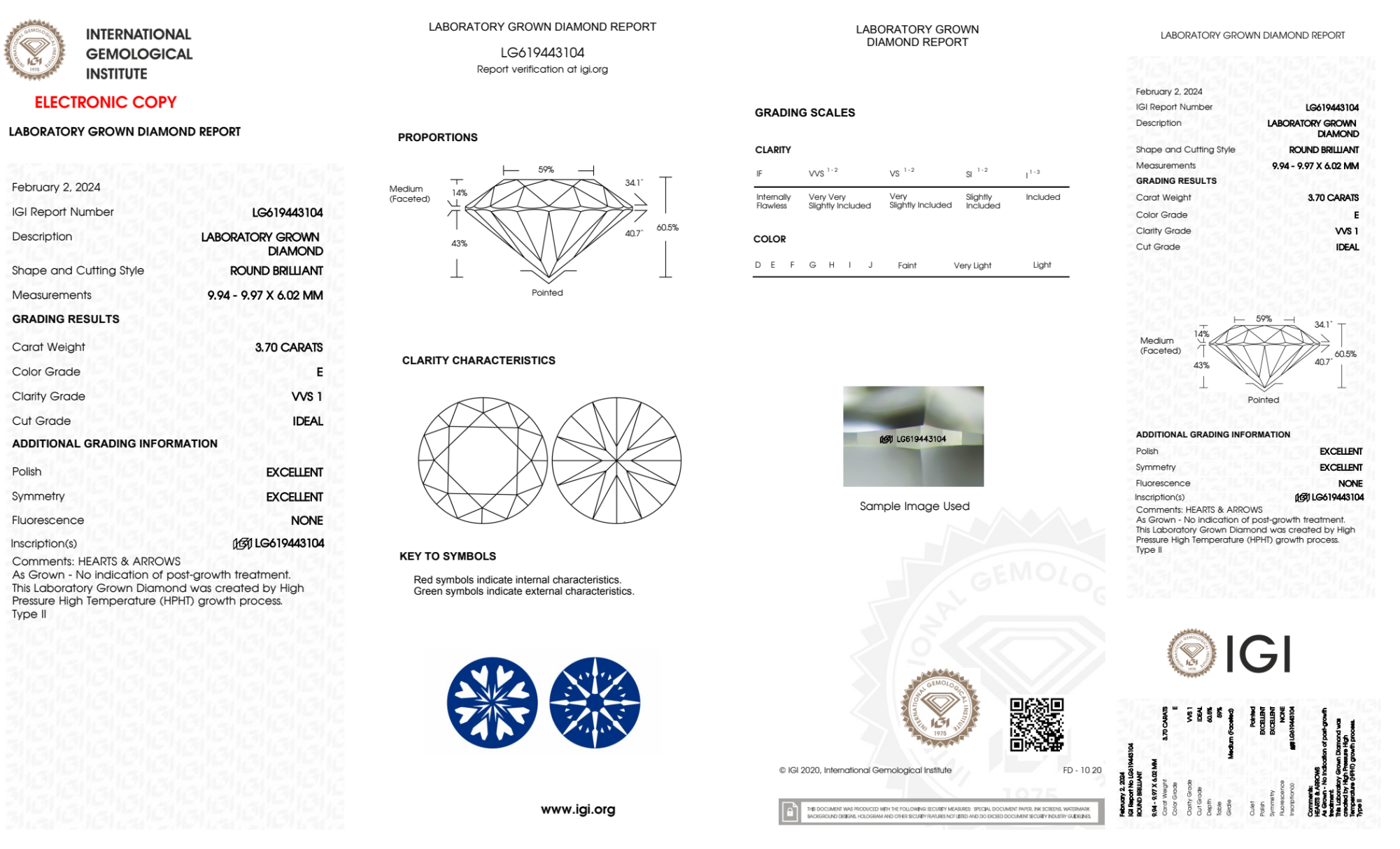 Your 3.70 carat Round lab diamond is graded E color (Colorless), and you can read more about E color diamonds here.
