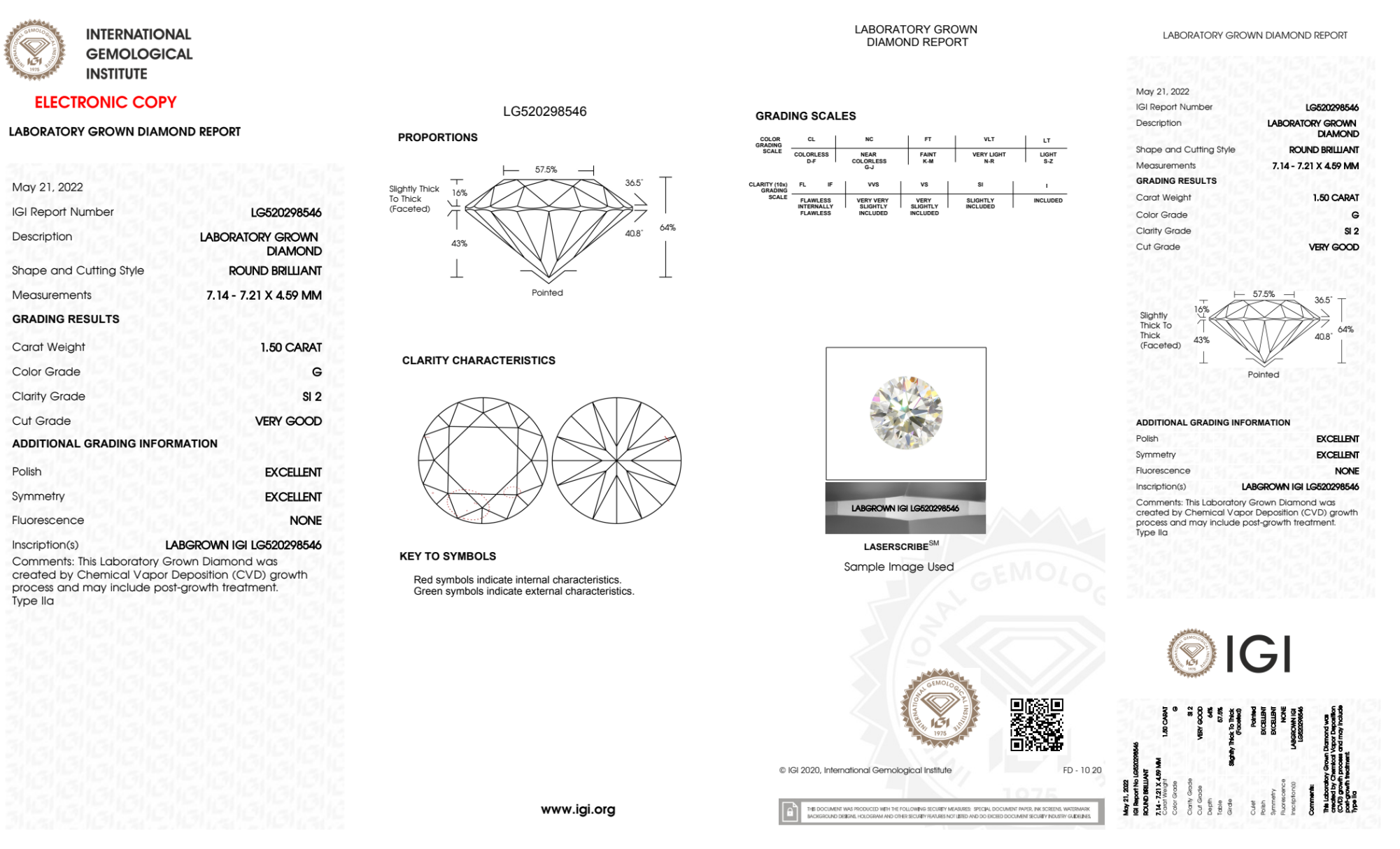 Your 1.50 carat Round lab diamond is graded G color (Near Colorless), and you can read more about G color diamonds here.