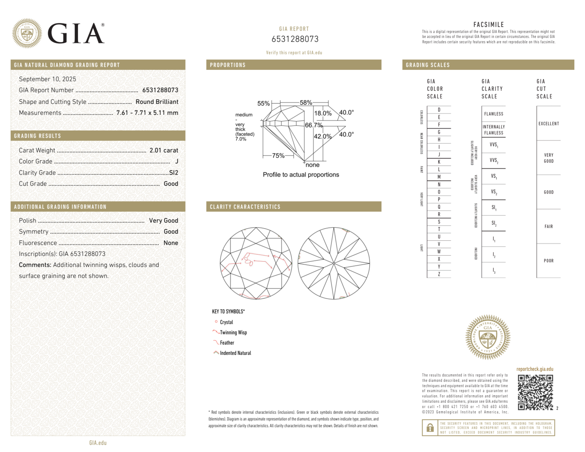 Your 2.01 carat Round natural diamond is graded J color (Near Colorless), and you can read more about J color diamonds here.