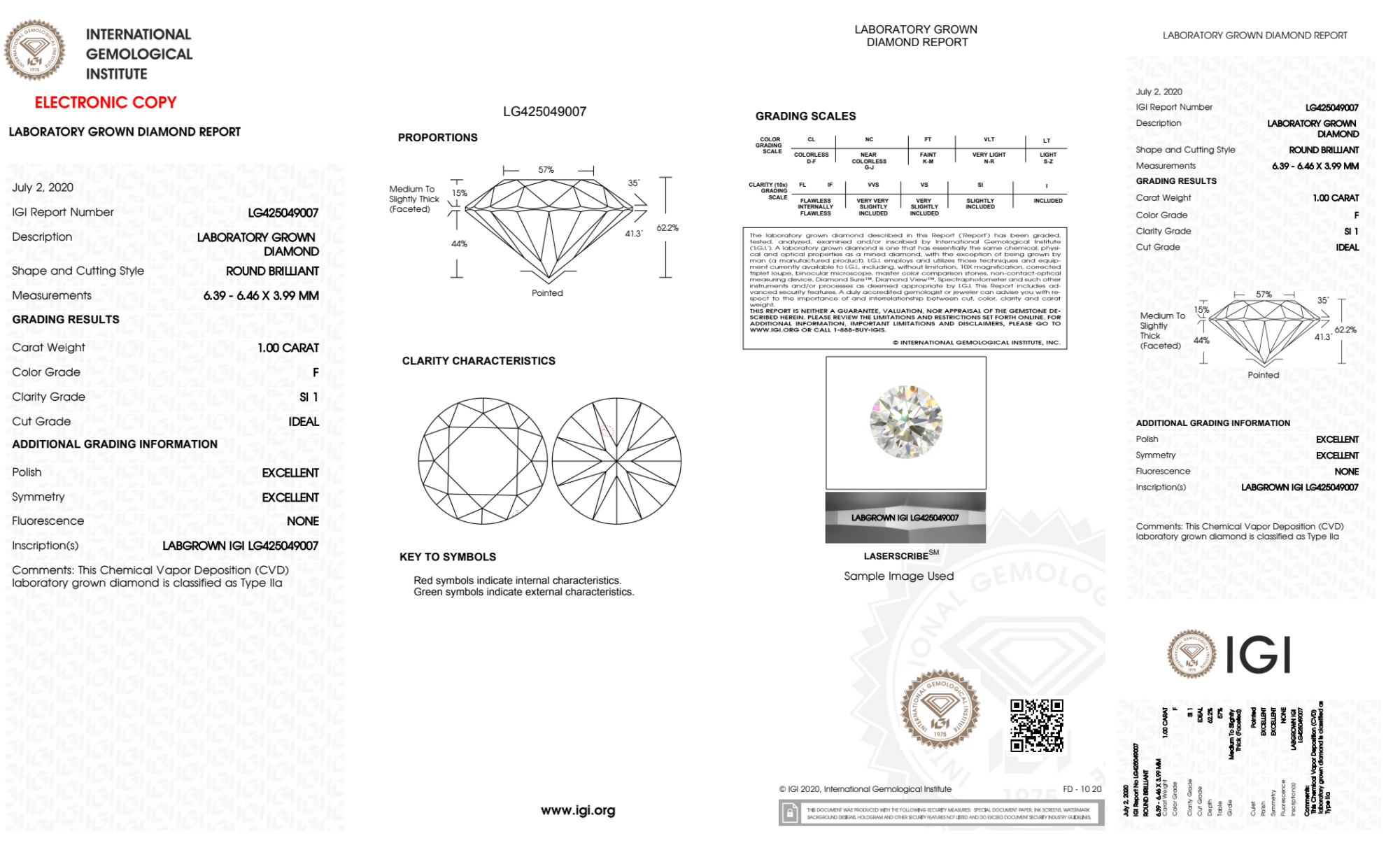 Your 1.00 carat Round lab diamond is graded F color (Colorless), and you can read more about F color diamonds here.