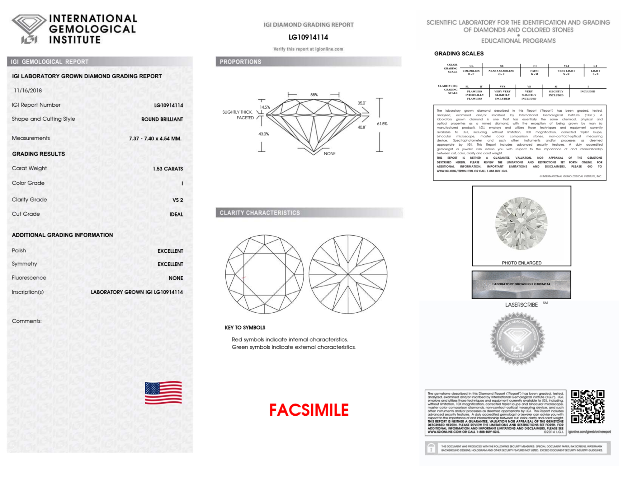 Your 1.53 carat Round lab diamond is graded VS2 clarity, which stands for Very Slightly Included 2. Read more about VS2 clarity diamonds here, or learn more about diamond clarity in general here.