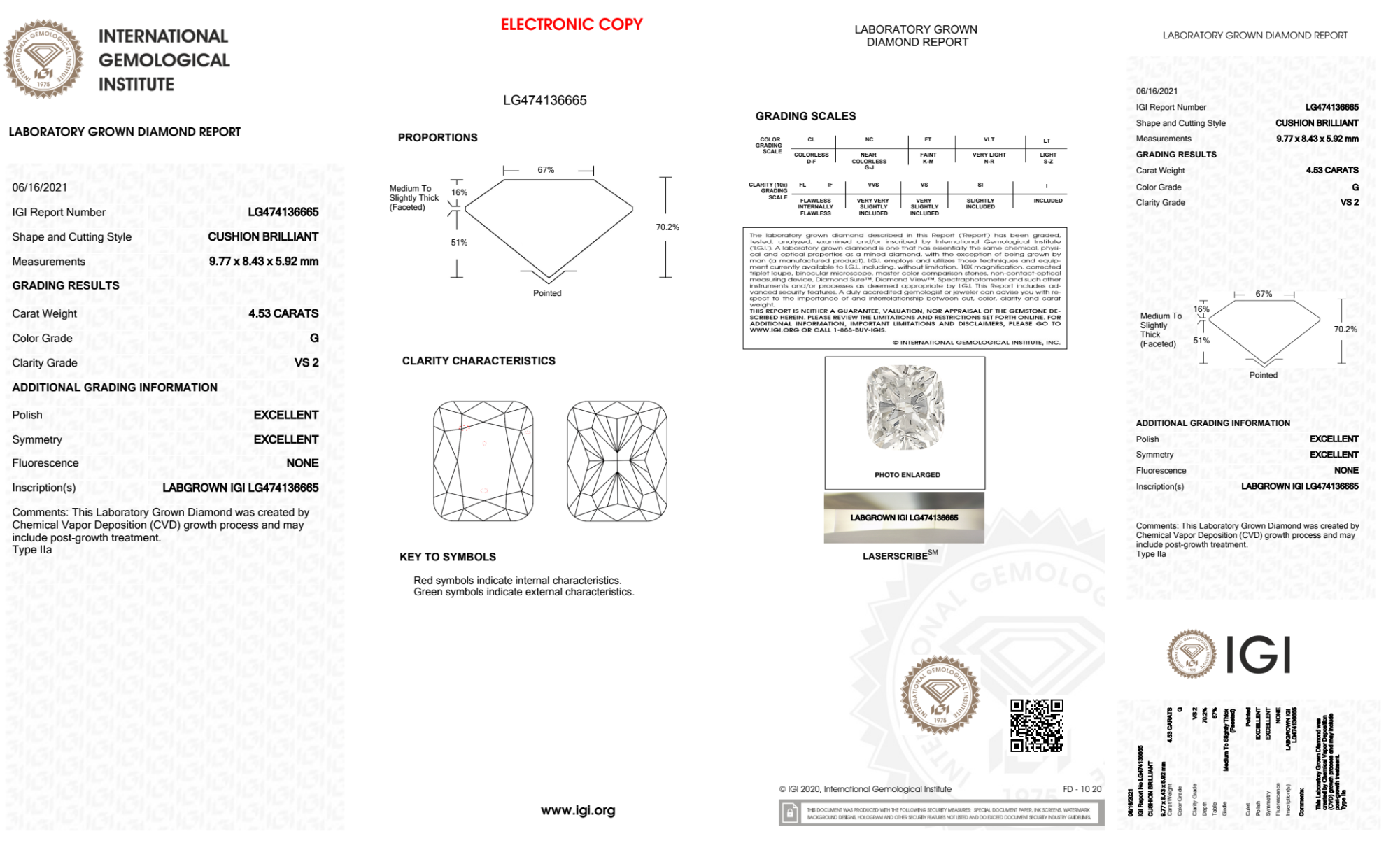 4.53 Carat cushion lab Diamond