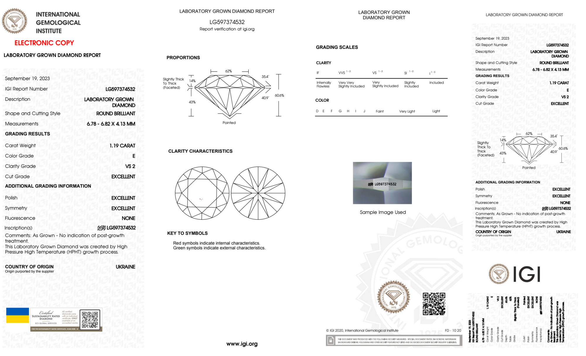 Your 1.19 carat Round lab diamond is graded E color (Colorless), and you can read more about E color diamonds here.