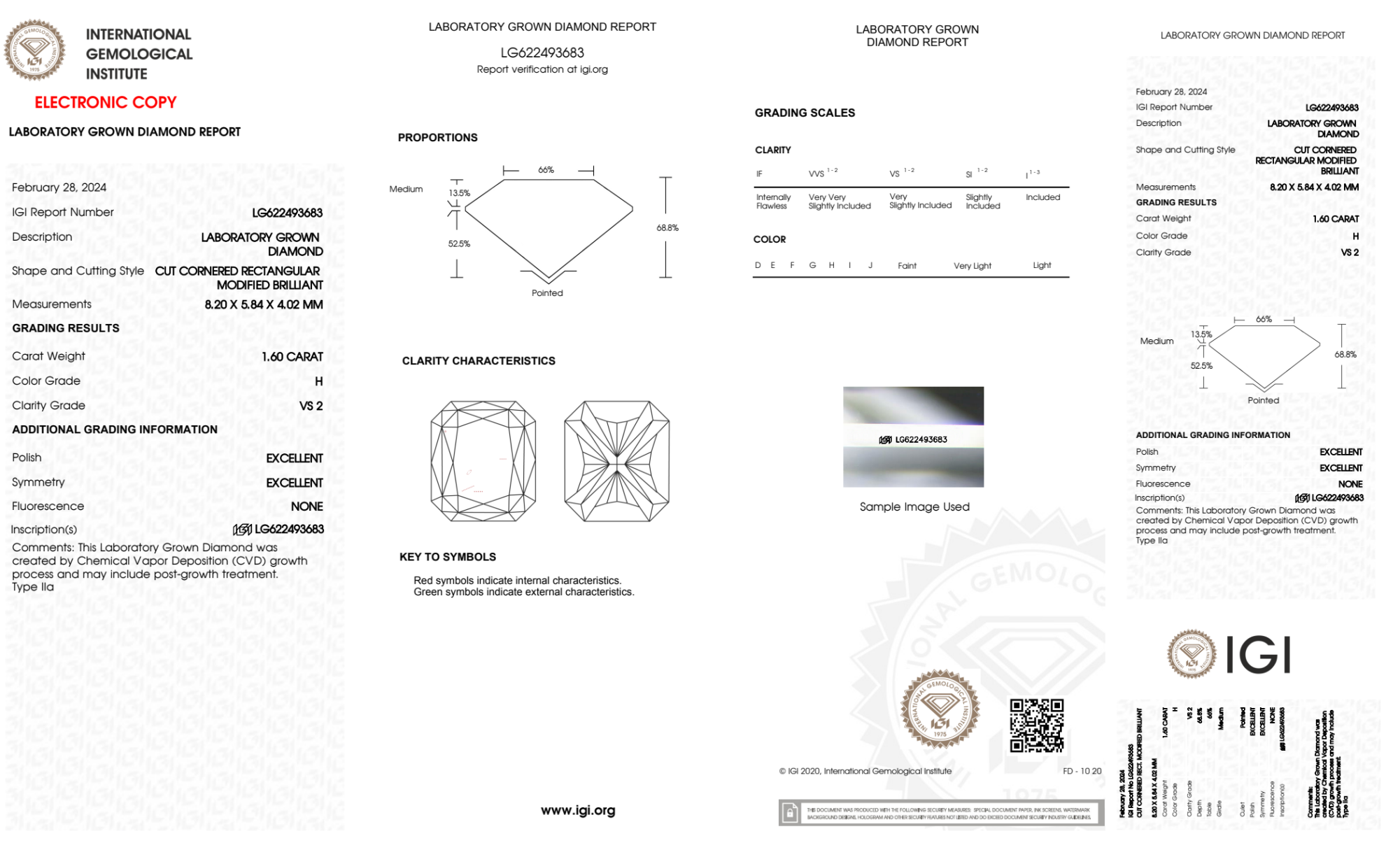 Your 1.60 carat Radiant lab diamond is graded H color (Near Colorless), and you can read more about H color diamonds here.