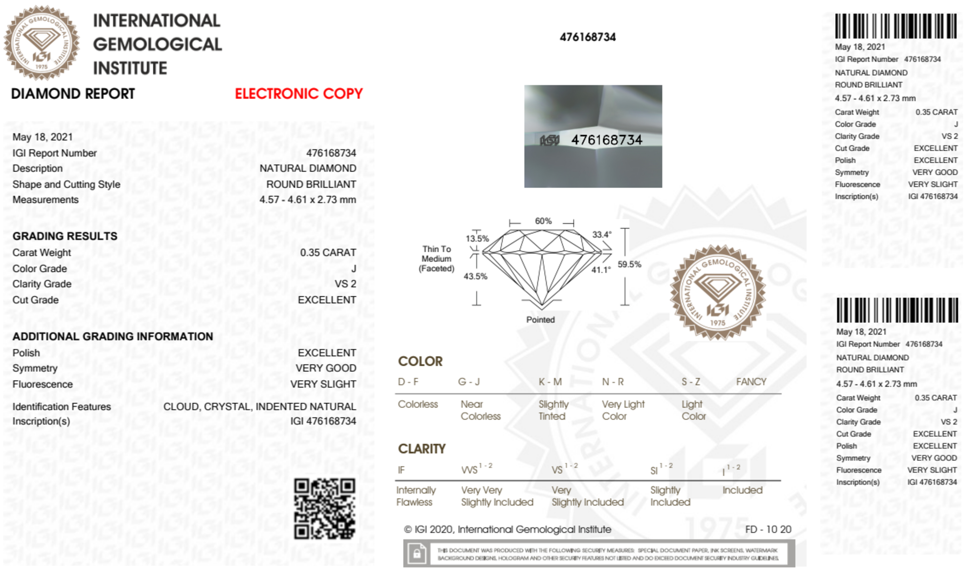 Your 0.35 carat Round natural diamond is graded J color (Near Colorless), and you can read more about J color diamonds here.