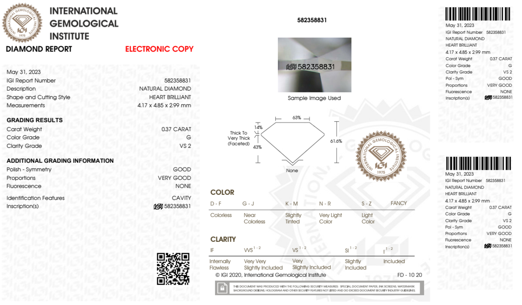 Your 0.37 carat Heart natural diamond is graded G color (Near Colorless), and you can read more about G color diamonds here.