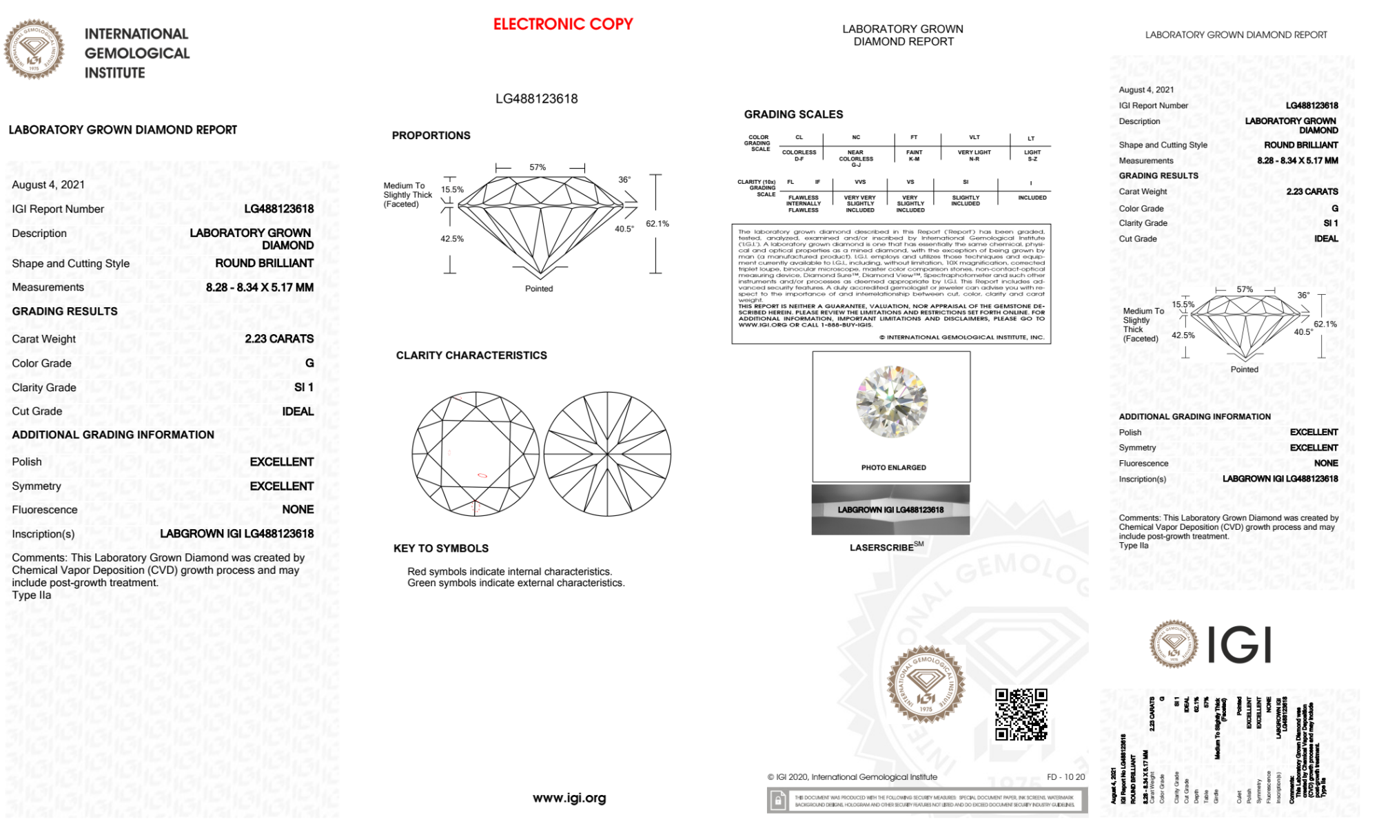 Your 2.23 carat Round lab diamond is graded G color (Near Colorless), and you can read more about G color diamonds here.
