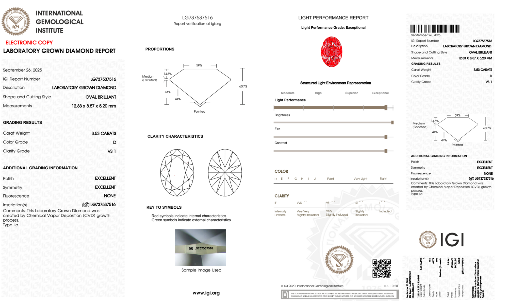 Your 3.53 carat Oval lab diamond is graded D color (Colorless), and you can read more about D color diamonds here.