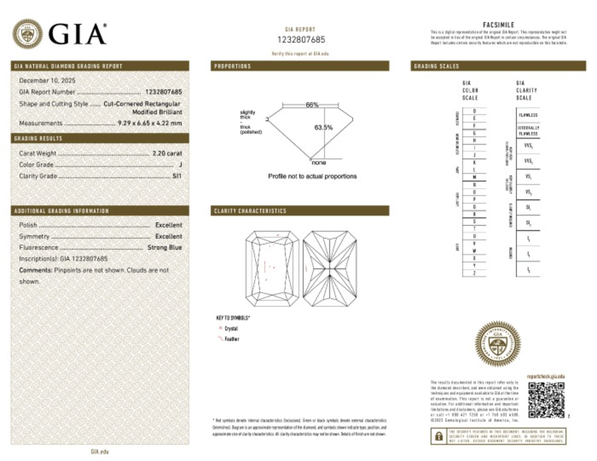 Your 2.20 carat Radiant natural diamond is graded J color (Near Colorless), and you can read more about J color diamonds here.