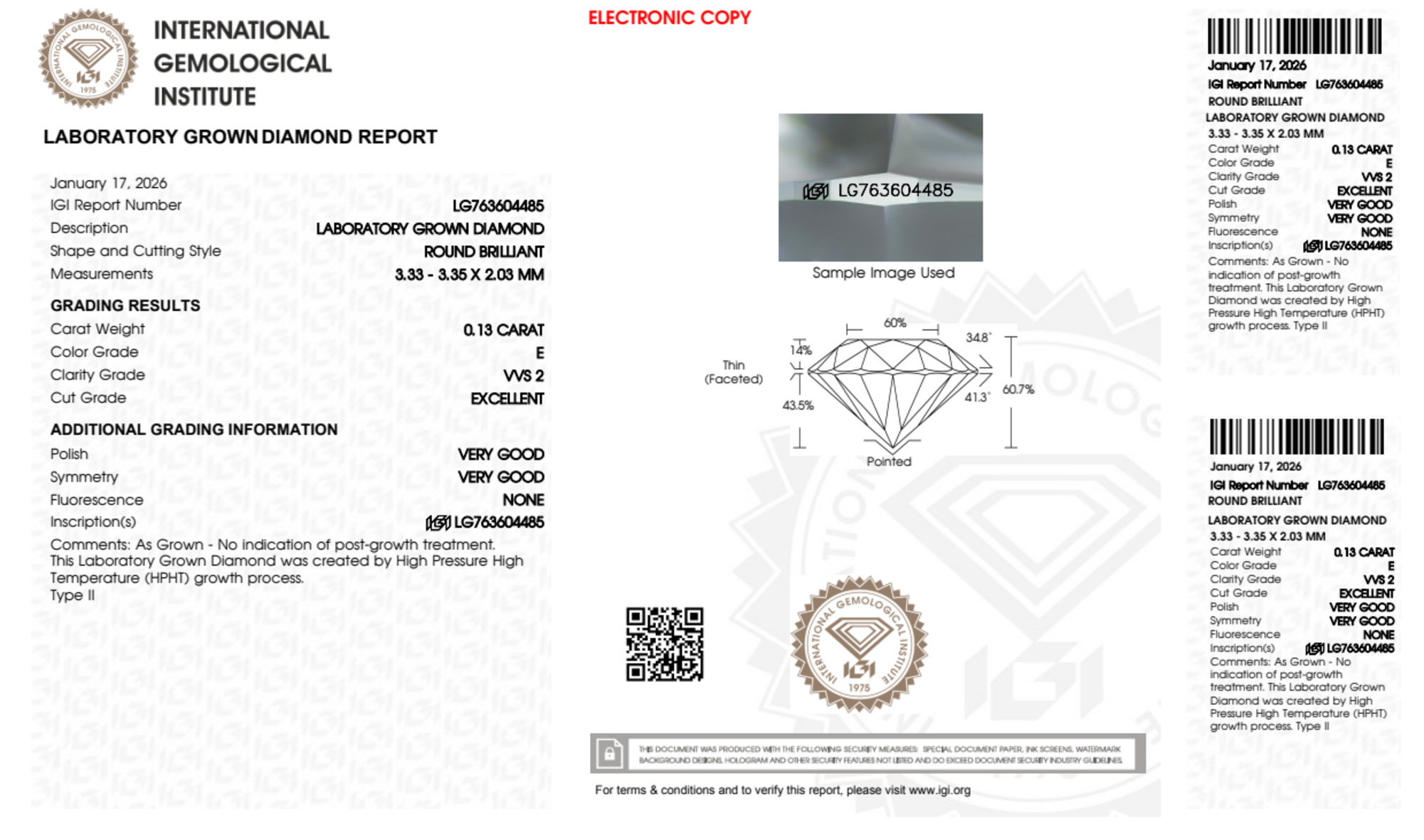 0.13 Carat round lab Diamond