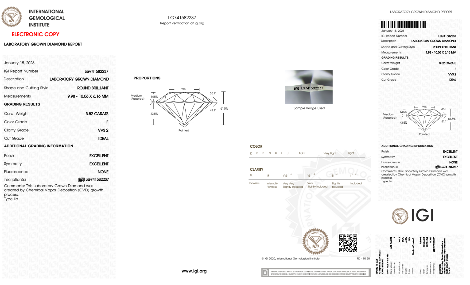 3.82 Carat round lab Diamond