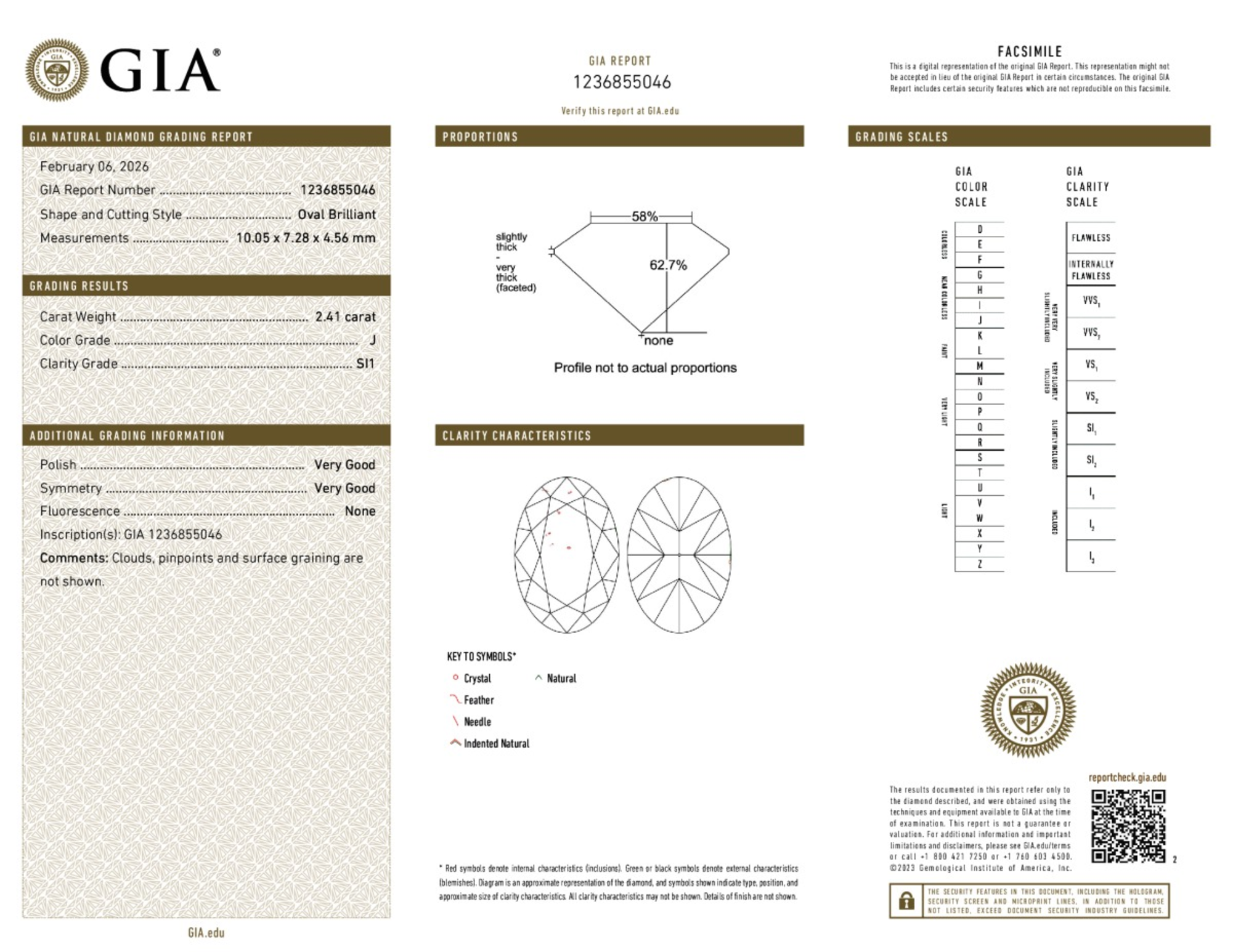 Your 2.41 carat Oval natural diamond is graded J color (Near Colorless), and you can read more about J color diamonds here.