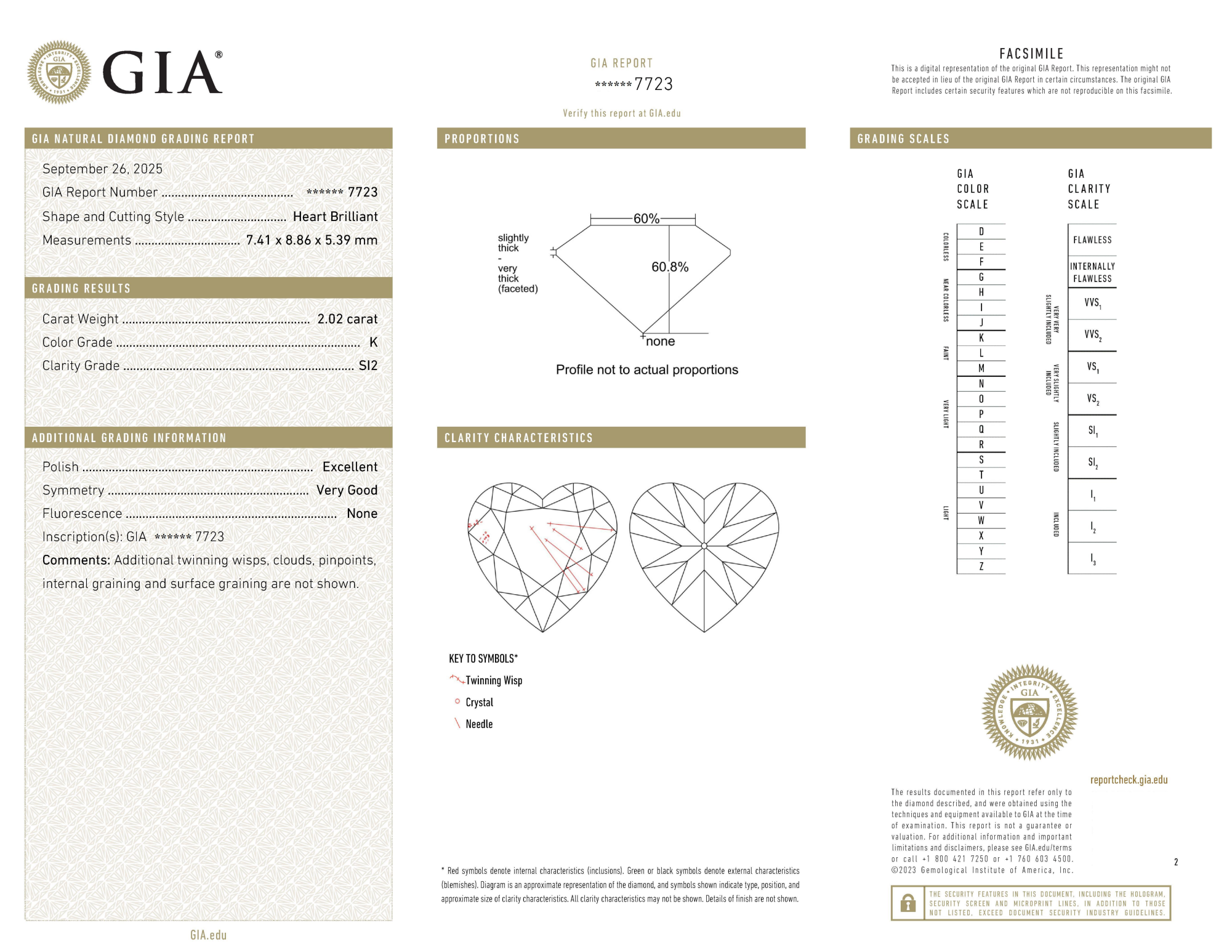 Your 2.02 carat Heart natural diamond is graded K color (Faint Color), and you can read more about K color diamonds here.