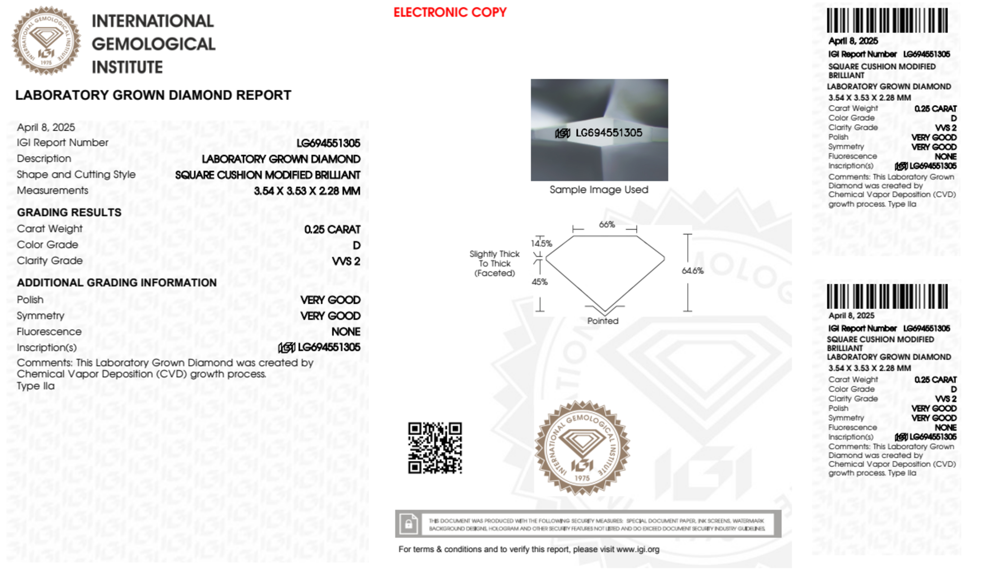 0.25 Carat cushion lab Diamond