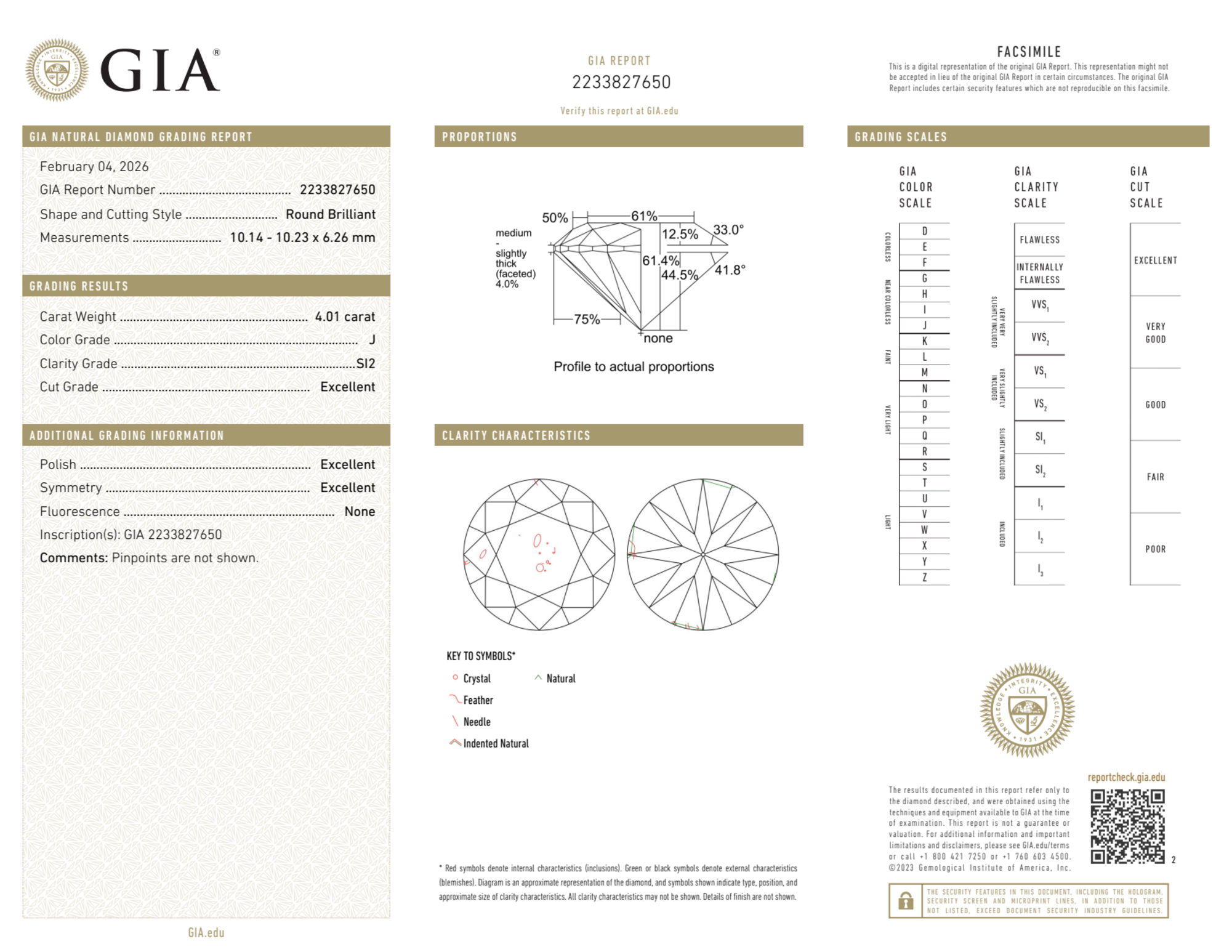 4.01 Carat round natural Diamond