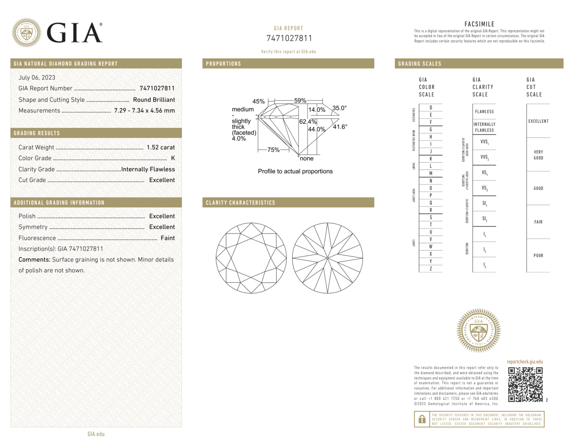 1.52 Carat round natural Diamond
