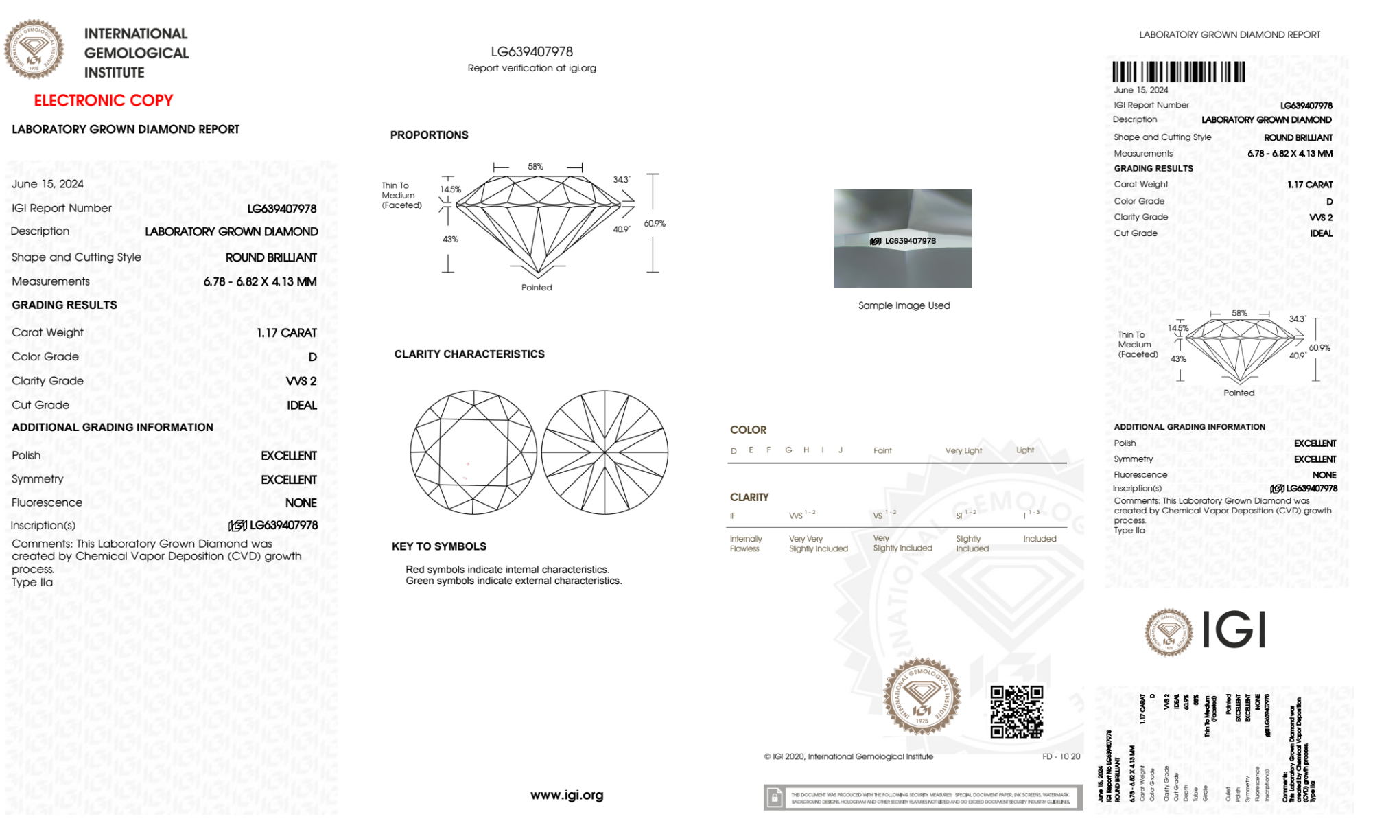 Your 1.17 carat Round lab diamond is graded D color (Colorless), and you can read more about D color diamonds here.
