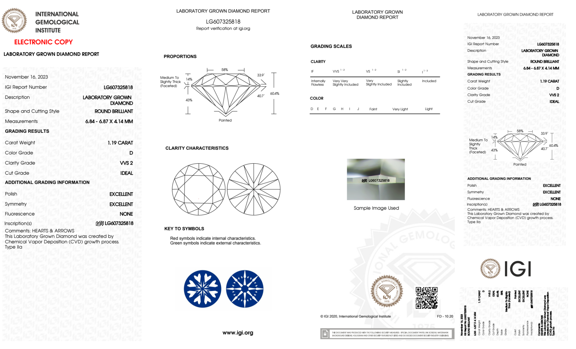 Your 1.19 carat Round lab diamond is graded D color (Colorless), and you can read more about D color diamonds here.