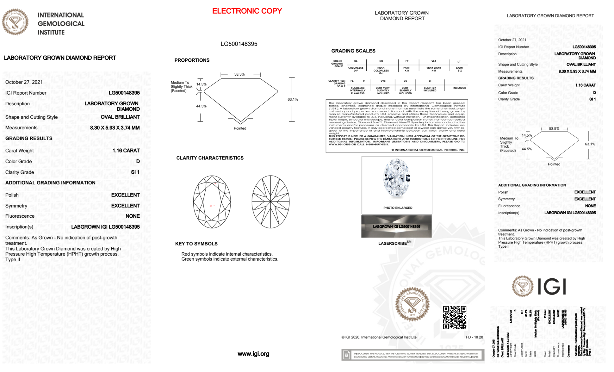 Your 1.16 carat Oval lab diamond is graded D color (Colorless), and you can read more about D color diamonds here.
