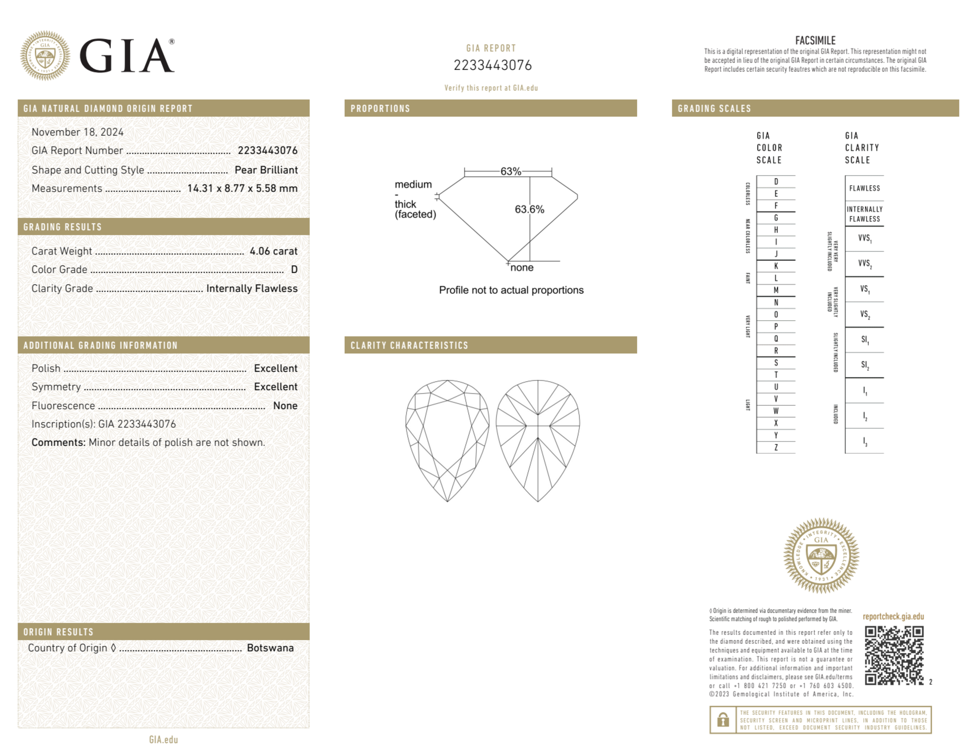 4.06 Carat pear natural Diamond
