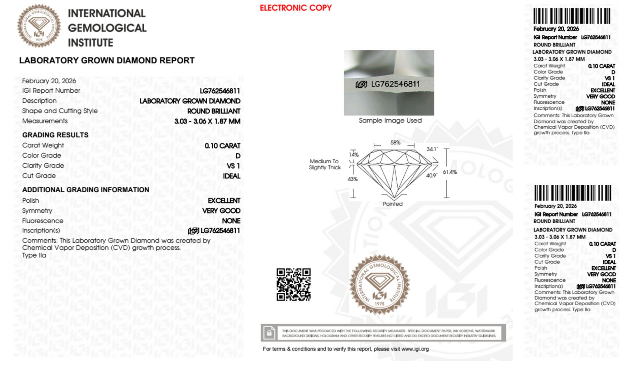 I was a little nervous about purchasing a ring online. I had some friends tell me not to Do it because it was sketchy and I did not Know what I would receive. That worry was put to rest as soon as I saw thing ring in person. It also comes with the IGI certification and a value sheet. Which was nice. All in all the prices are unbeatable and the settings they have look great. P.S she loved the ring