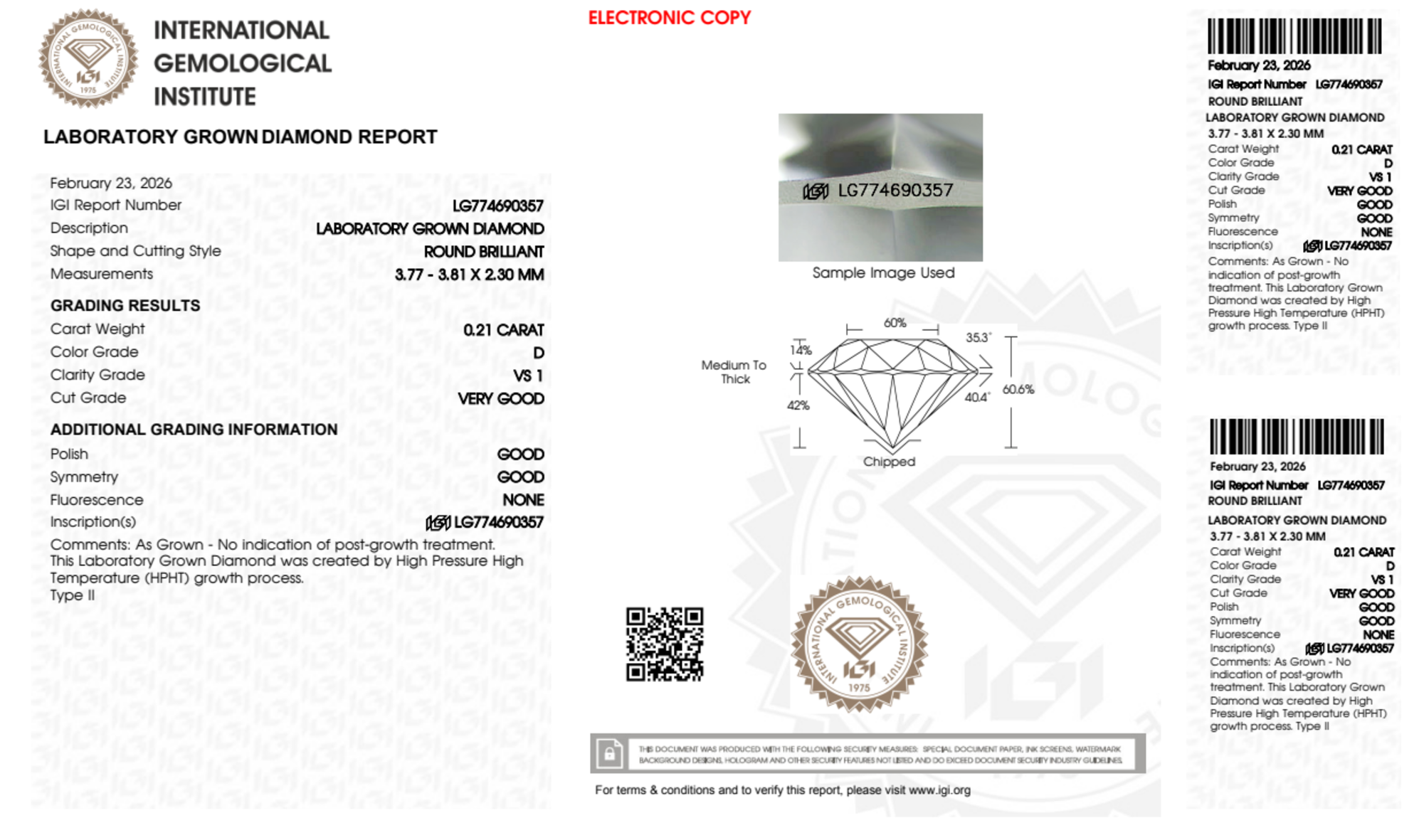 0.21 Carat round lab Diamond