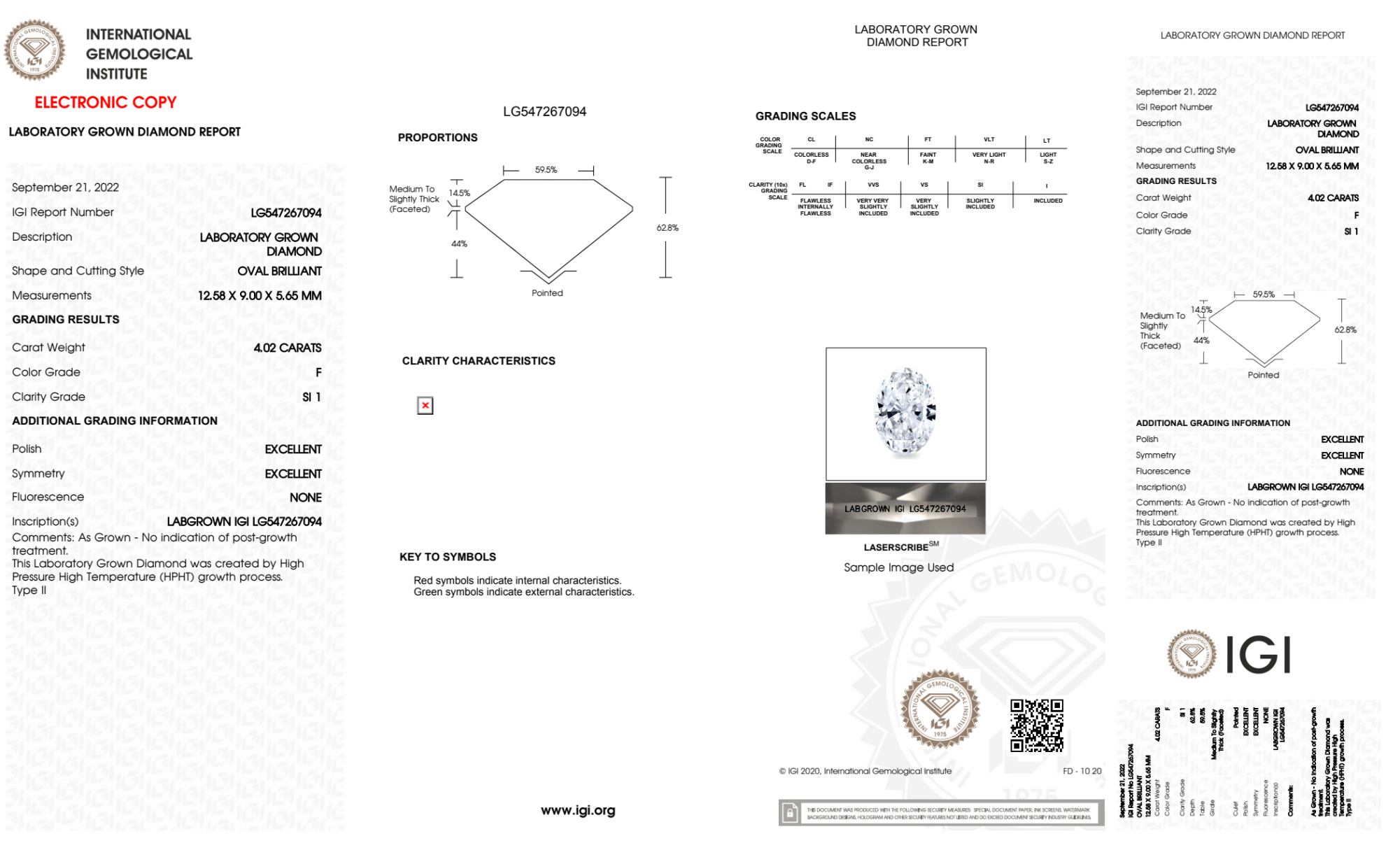 Your 4.02 carat Oval lab diamond is graded F color (Colorless), and you can read more about F color diamonds here.