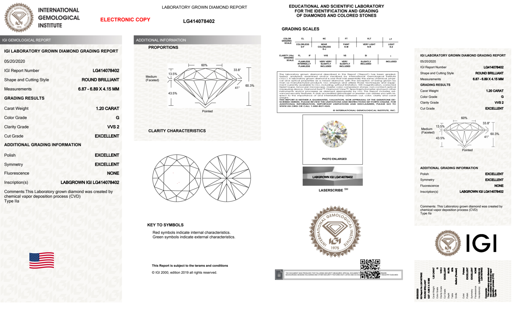 Your 1.20 carat Round lab diamond is graded G color (Near Colorless), and you can read more about G color diamonds here.