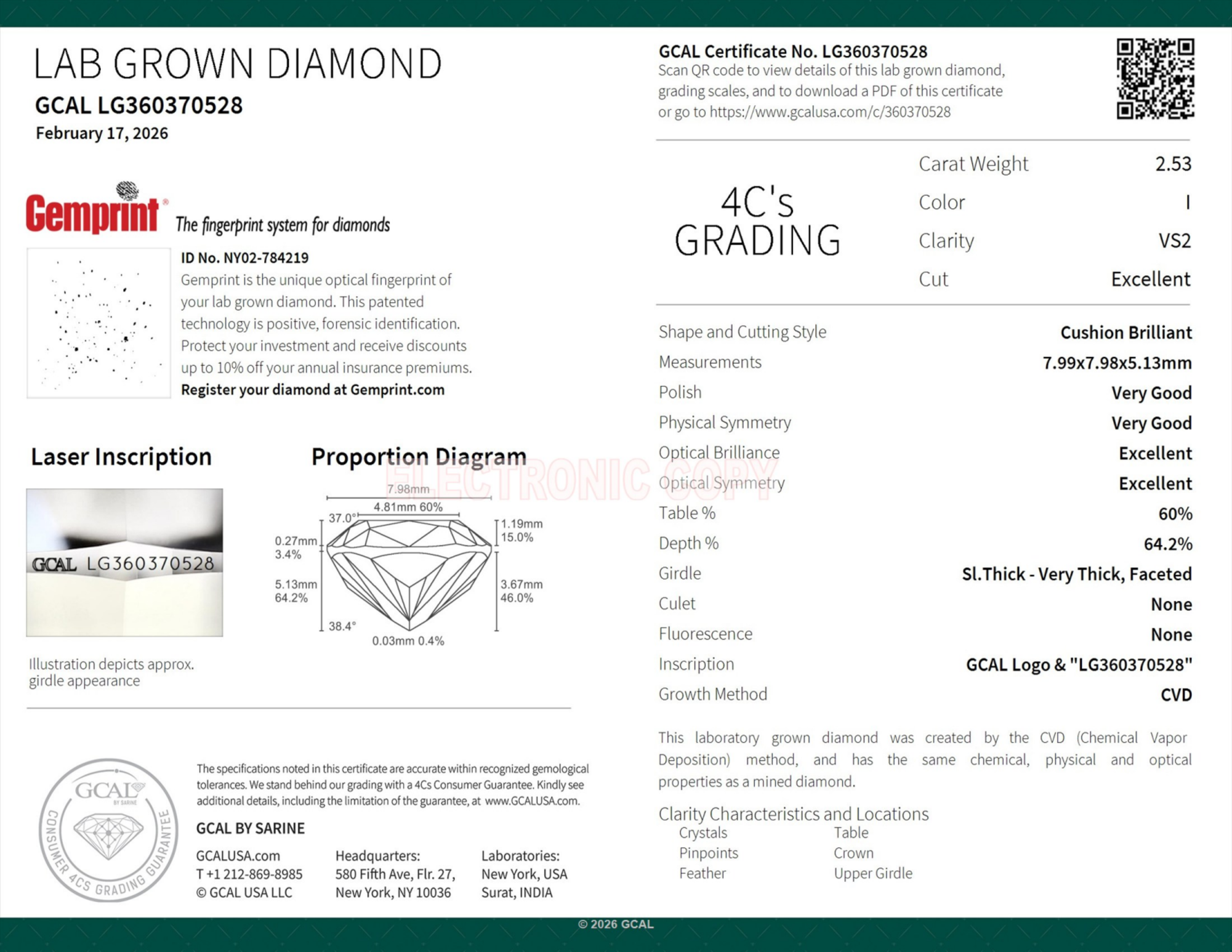 2.53 Carat cushion lab Diamond
