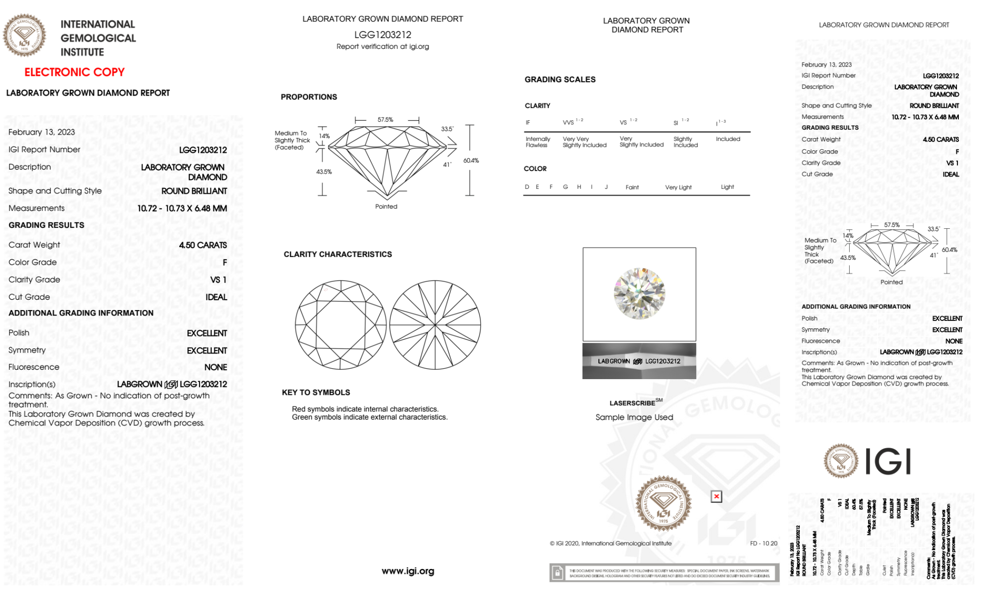 4.50 Carat round lab Diamond