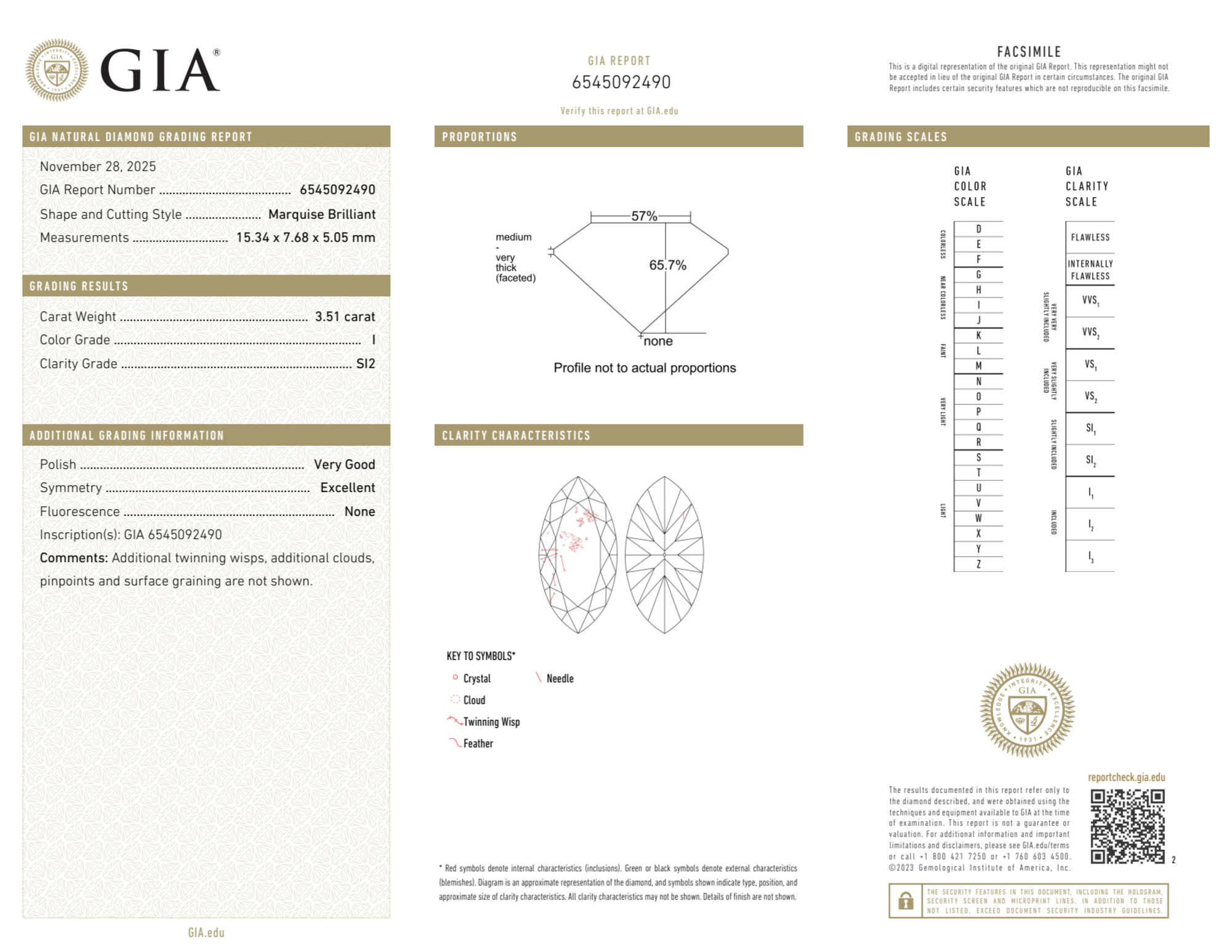 Your 3.51 carat Marquise natural diamond is graded I color (Near Colorless), and you can read more about I color diamonds here.