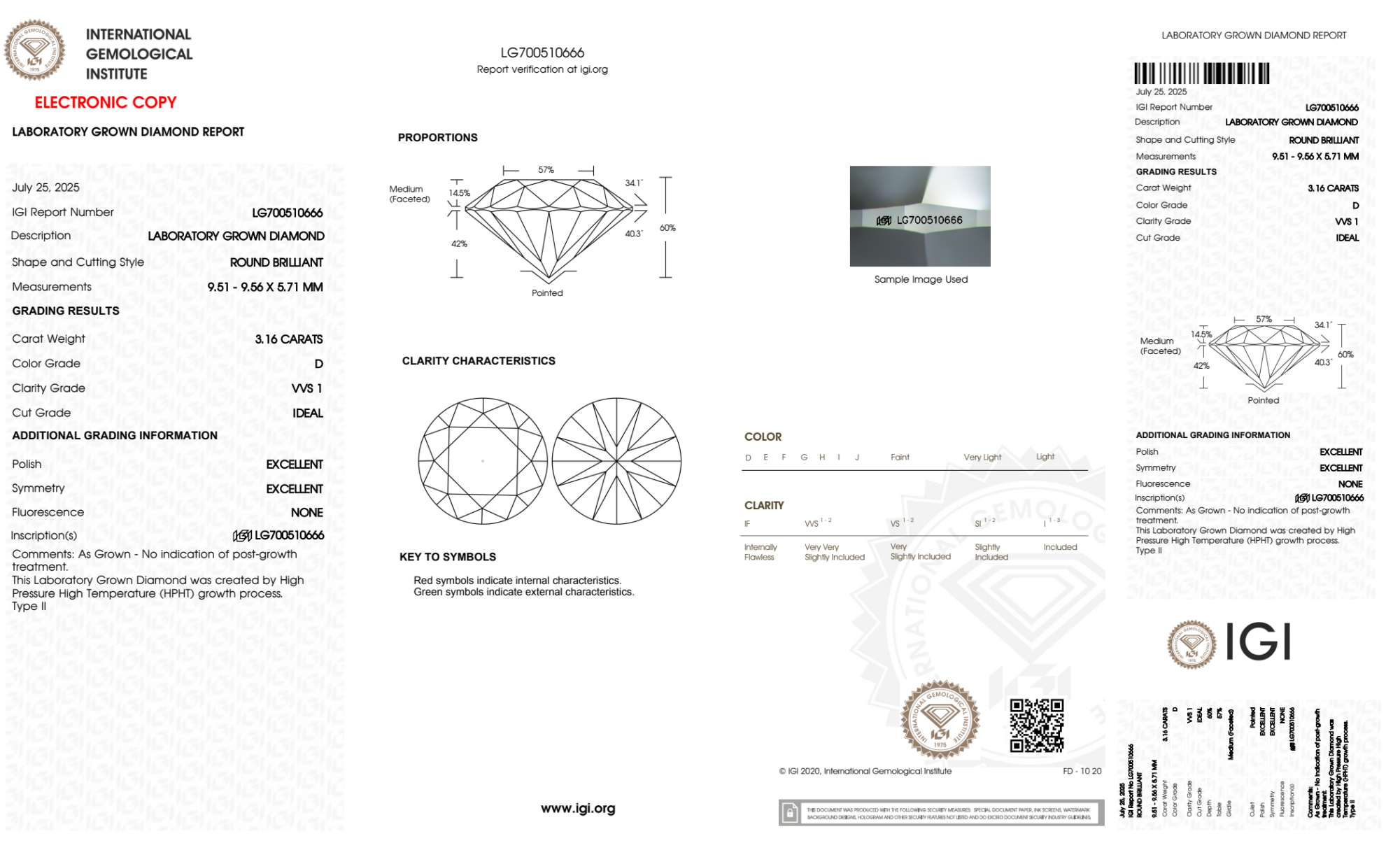 Your 3.16 carat Round lab diamond is graded D color (Colorless), and you can read more about D color diamonds here.